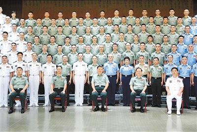 下午3时15分许,习近平来到东部战区机关,在热烈的掌声中,亲切接见东部战区官兵代表,同大家合影留念。
