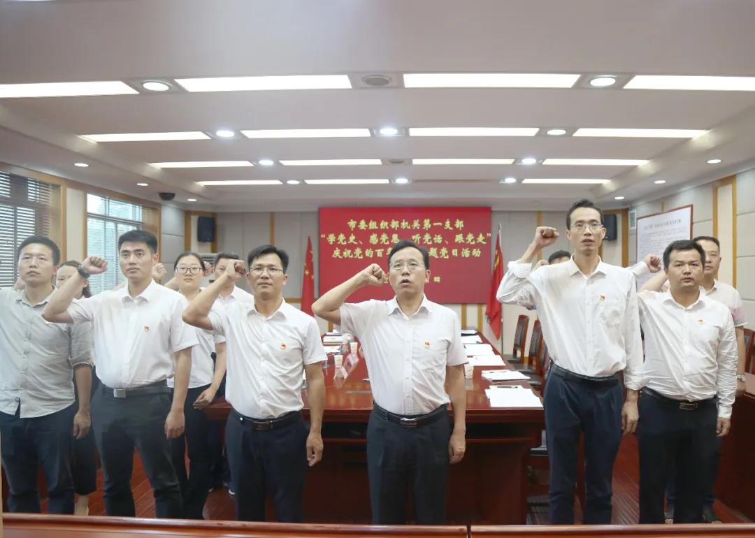 活动中,市委组织部机关第一党支部全体党员集体缴纳了党费,重温了入党誓词,领取了政治生日贺卡,集中学习了习近平总书记在庆祝中国共产党成立一百周年大会上的重要讲话,并进行了学习研讨。