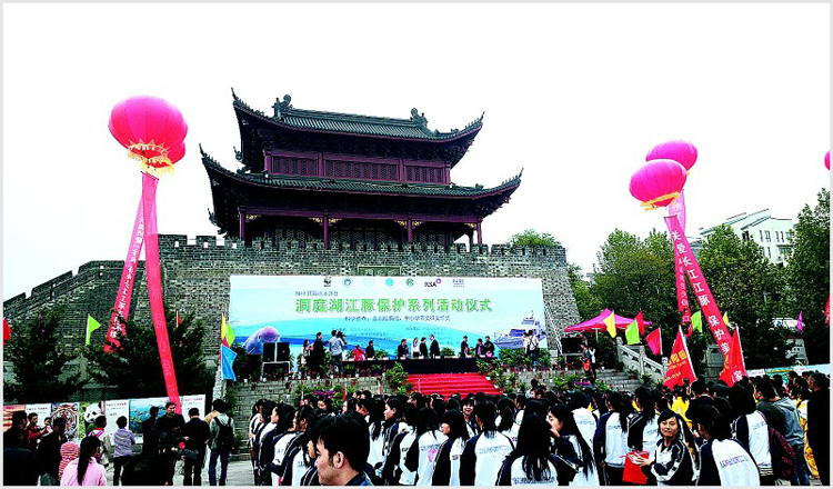 此次系列活动由市政府主办,世界自然基金会、中科院武汉水生生物研究所、市畜牧水产局承办,包括世界自然基金会和太阳联合保险(中国)有限公司向市畜牧水产局渔政管理站捐赠洞庭湖监测保护船(右上图为该船模型);农业部、水生所、世界自然基金会联合开展的长江全流域江豚科学调查洞庭湖站活动正式启动;“绿色湖南、生态岳阳”保护江豚中小学生有奖征文颁奖等。长江江豚是唯一的淡水亚种,属于国家二级保护动物,濒危珍稀水生物种,分布于长江中下游、洞庭湖、鄱阳湖等内陆水域,目前仅存1500头,已濒临灭绝。该系列活动旨在进一步增强全社会保护江豚的意识,营造保护江豚的浓厚氛围,维护洞庭湖生态环境,全力推进“洞庭风雷”行动。