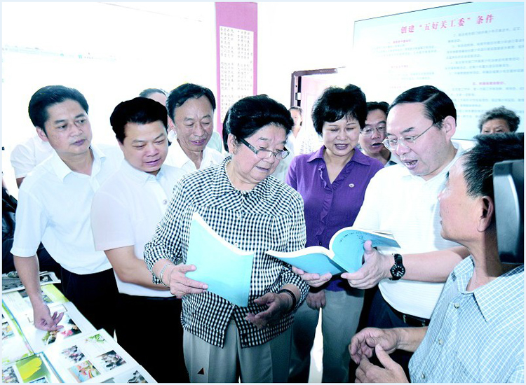 顾秀莲一行在省委副书记梅克保、市委书记黄兰香、市长盛荣华等陪同下考察君山新洲村关心下一代工作。