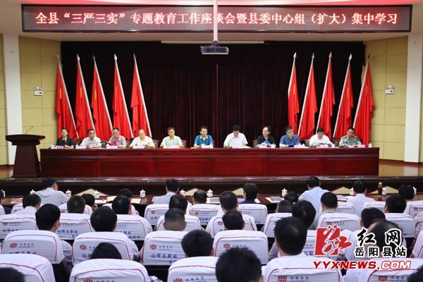 6月1日, 我岳阳县举行“三严三实”专题教育工作座谈会暨县委中心组(扩大)集中学习活动。毛知兵、张中于、汤小娥、汤森林、彭西罗等县“四大家”领导班子成员,全体县处级领导干部,县直部门主要负责人,各乡镇党委书记、乡镇长等一同参加学习活动。县委书记毛知兵以《践行“三严三实” 做新时期好干部》为题,给大家上了一堂生动的党课。
