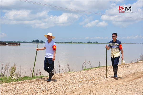 汨罗国税抢险队巡堤查险。