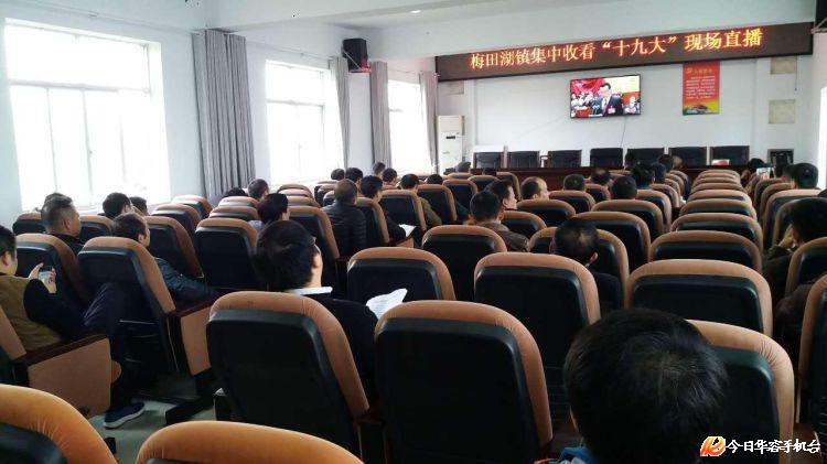 10月18日,万众瞩目的中国共产党第十九次全国代表大会在北京隆重开幕。岳阳市华容县梅田湖镇全体机关干部、站所职工集体收看十九大开幕盛况。