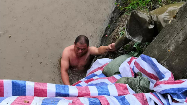 眼见着形势越来越严峻,聂建干立马上前抢着说道:“这种情况我熟悉,我来吧。”说完便脱去上衣,步入水中,经过几次尝试,终于成功关闭节制闸。来不及休息,他又与民兵突击队一起,用砂卵石堵住了水下所有翻沙鼓水点,成功稳住情况,也让现场所有人舒了一口气。