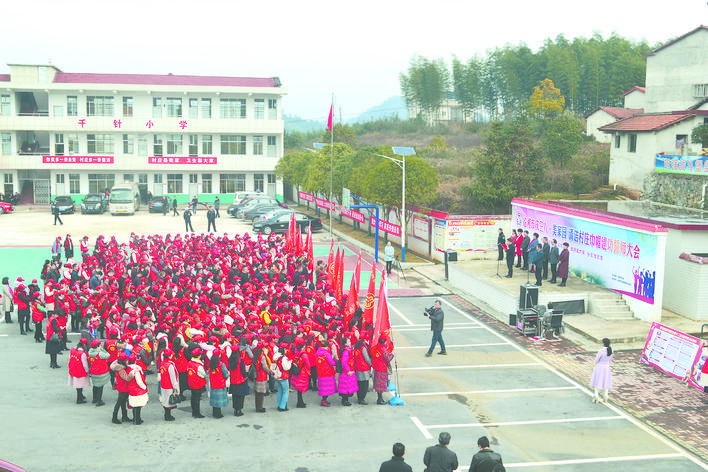 3月4日上午,在第109个国际劳动妇女节来临之际,临湘市五里街道办事处千针村村级活动中心,来自该市乡镇(街道)、市直单位共300余名妇女头戴小红帽,身穿红马甲,开展“庆三八·美家园”清洁村庄巾帼建功誓师动员大会。此次动员会是该市妇联开展“美家美妇美丽临湘”系列活动之一,目的是动员该市妇女组织积极组建巾帼先锋队,号召10万妇女同胞积极投身村庄清洁攻坚行动,为推动临湘高质量发展贡献巾帼力量。乔雁城 摄