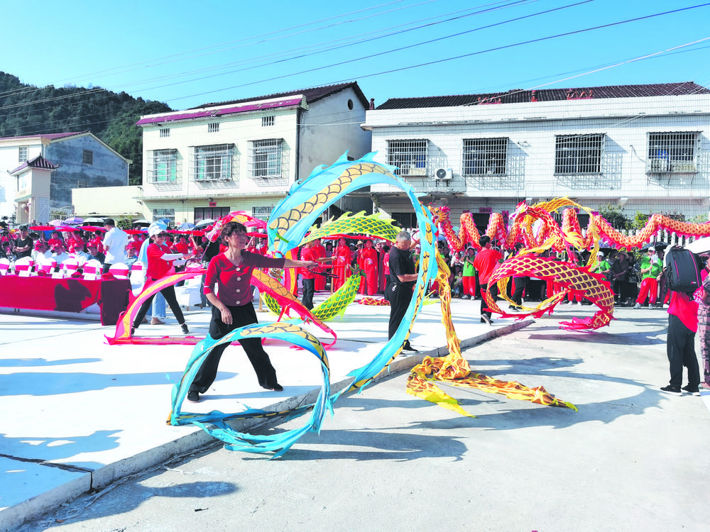 文化志愿者在岳阳县公田镇舞龙表演。刘时娟 摄