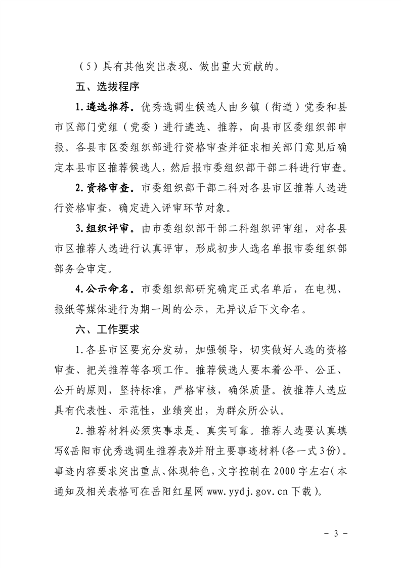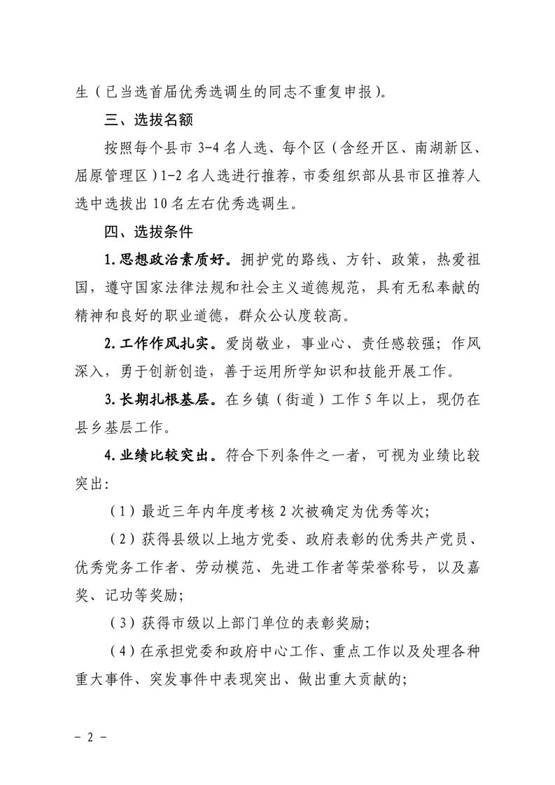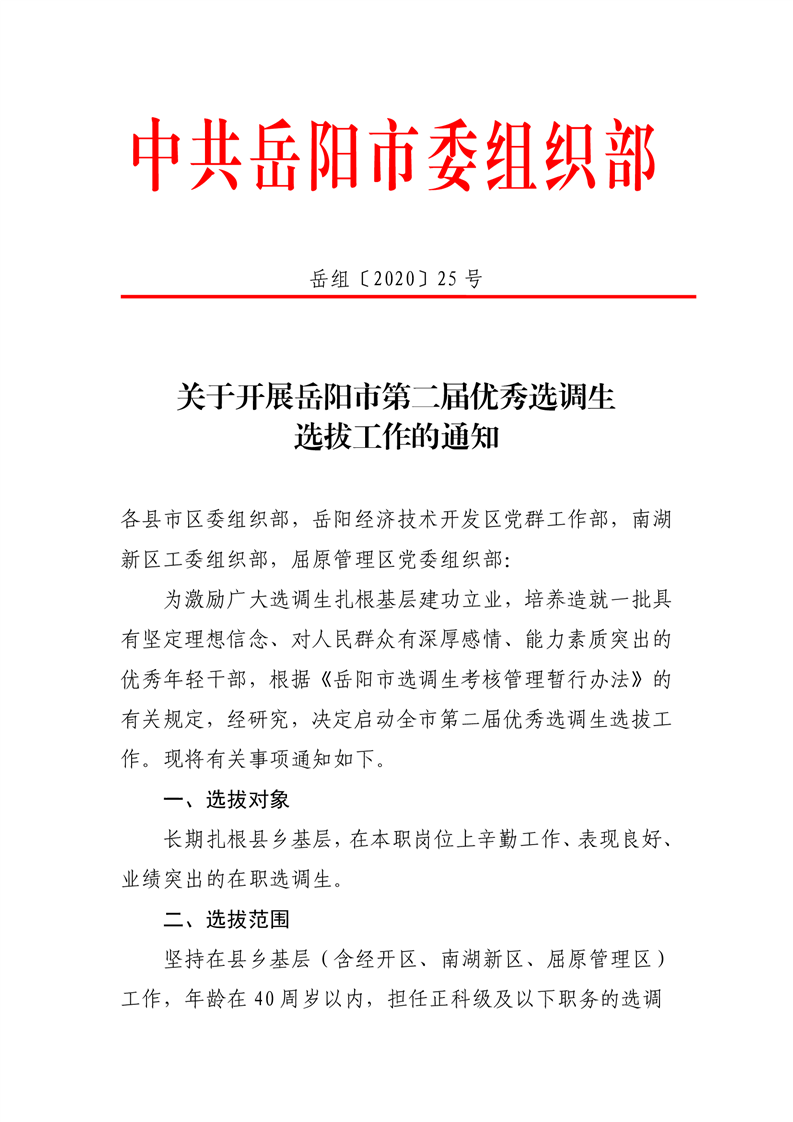 关于开展岳阳市第二届优秀选调生选拔工作的通知