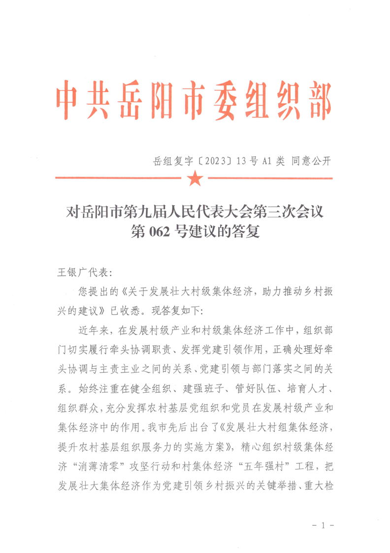 对岳阳市第九届人民代表大会第三次会议第062号建议的答复
