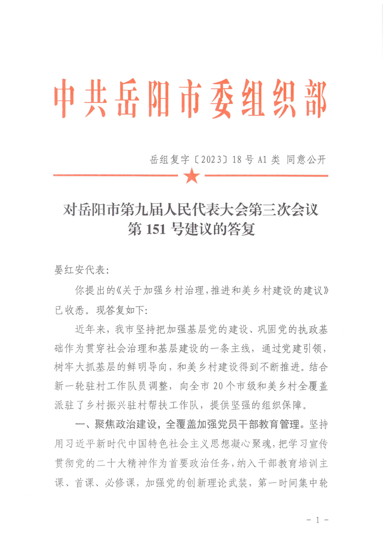 对岳阳市第九届人民代表大会第三次会议第151号建议的答复