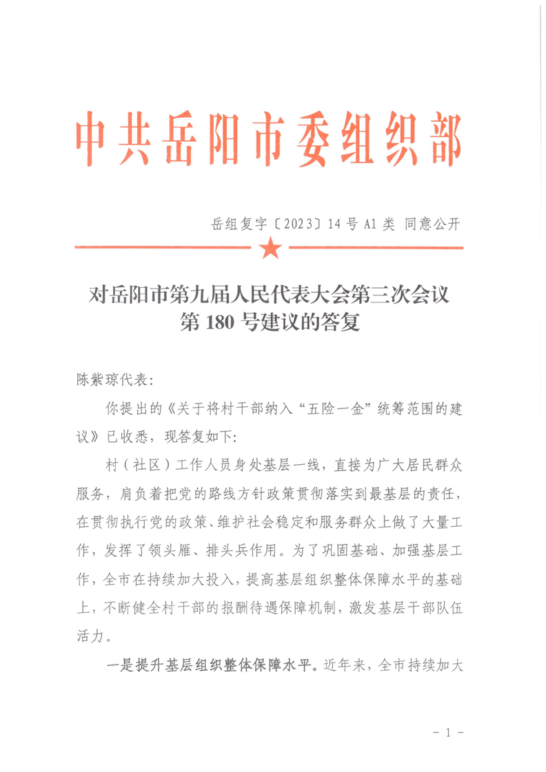 对岳阳市第九届人民代表大会第三次会议第180号建议的答复