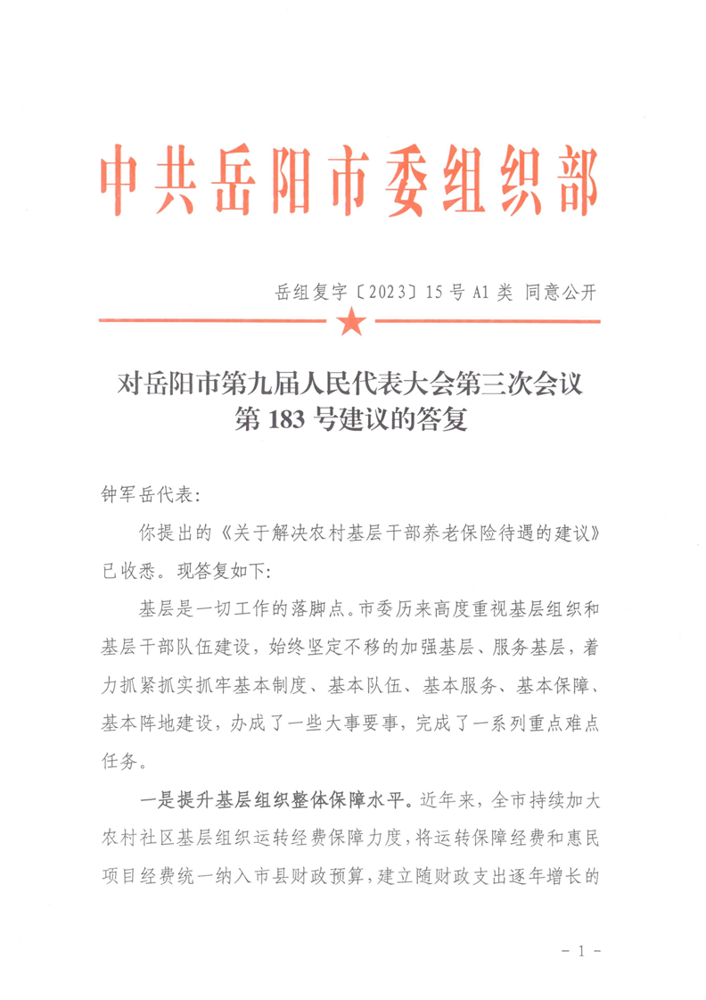 对岳阳市第九届人民代表大会第三次会议第183号建议的答复