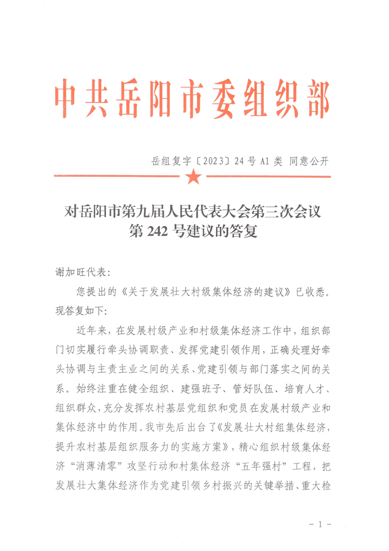 对岳阳市第九届人民代表大会第三次会议第242号建议的答复