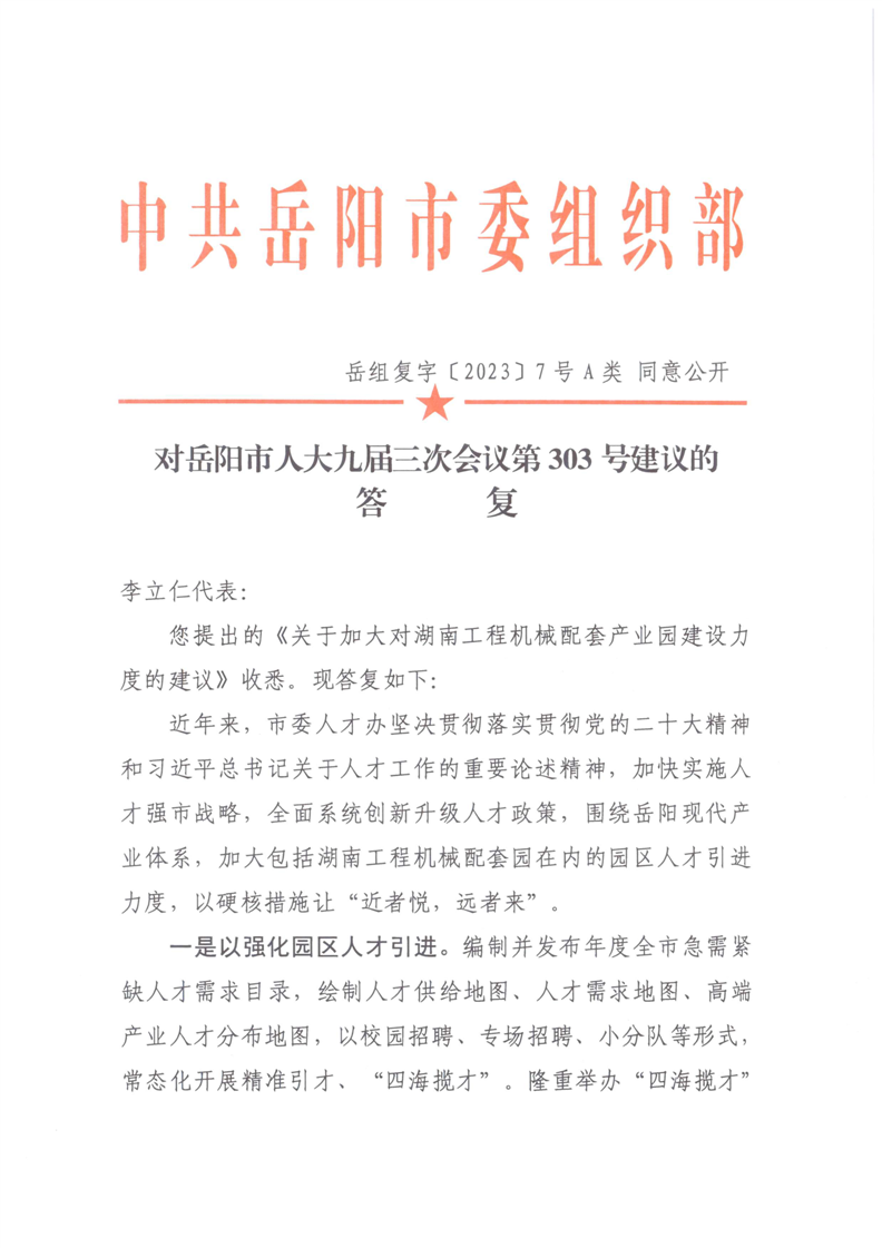 对岳阳市第九届人民代表大会第三次会议第303号建议的答复