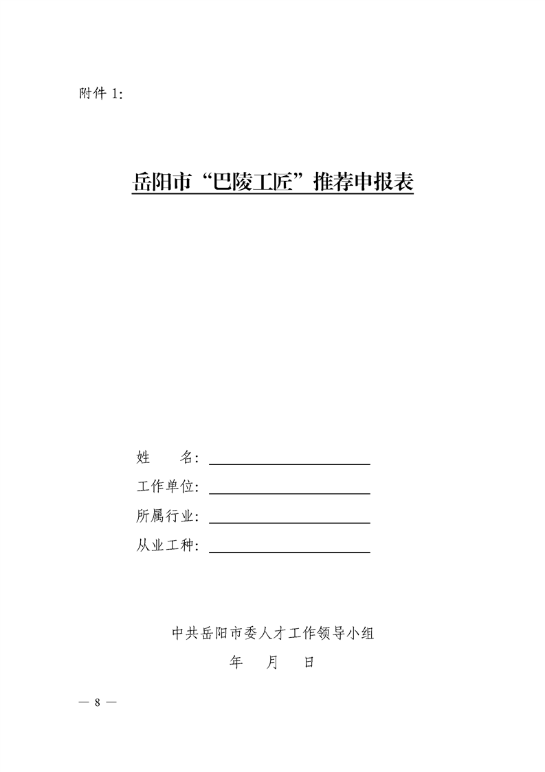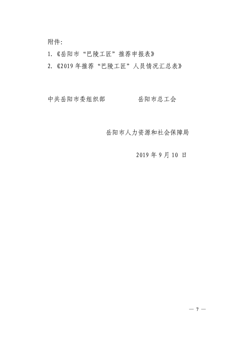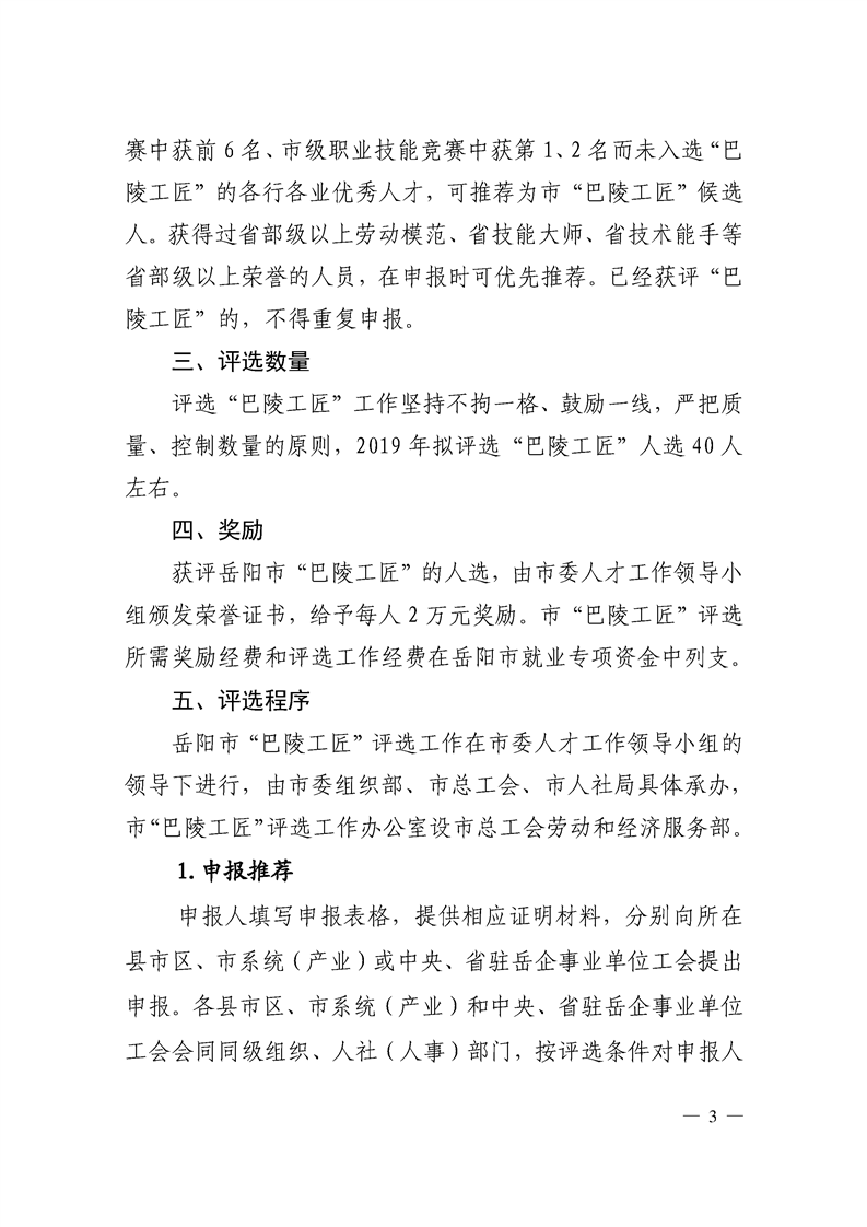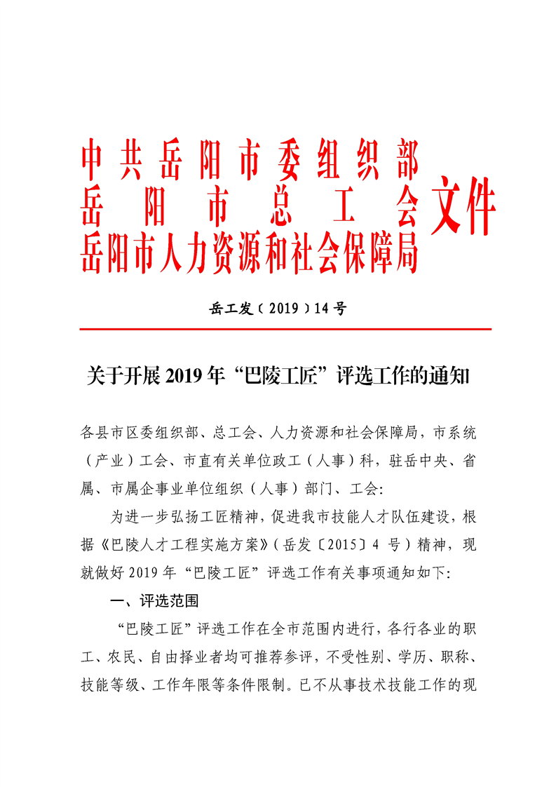 关于开展2019年“巴陵工匠”评选工作的通知