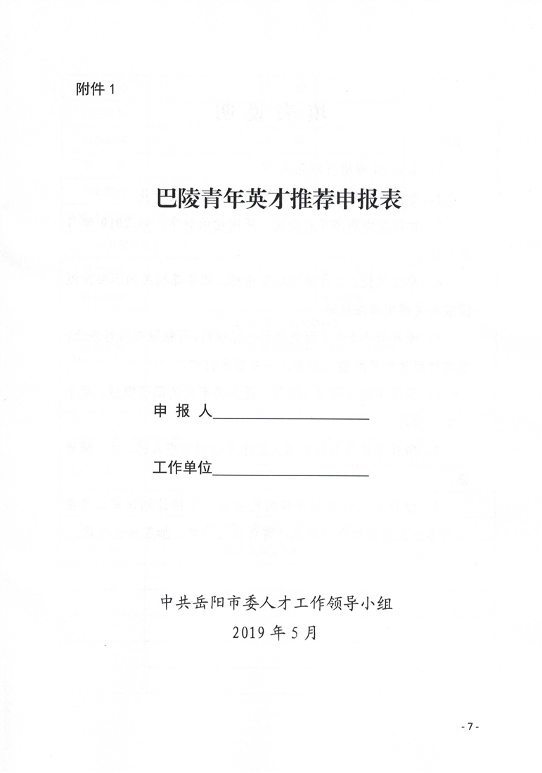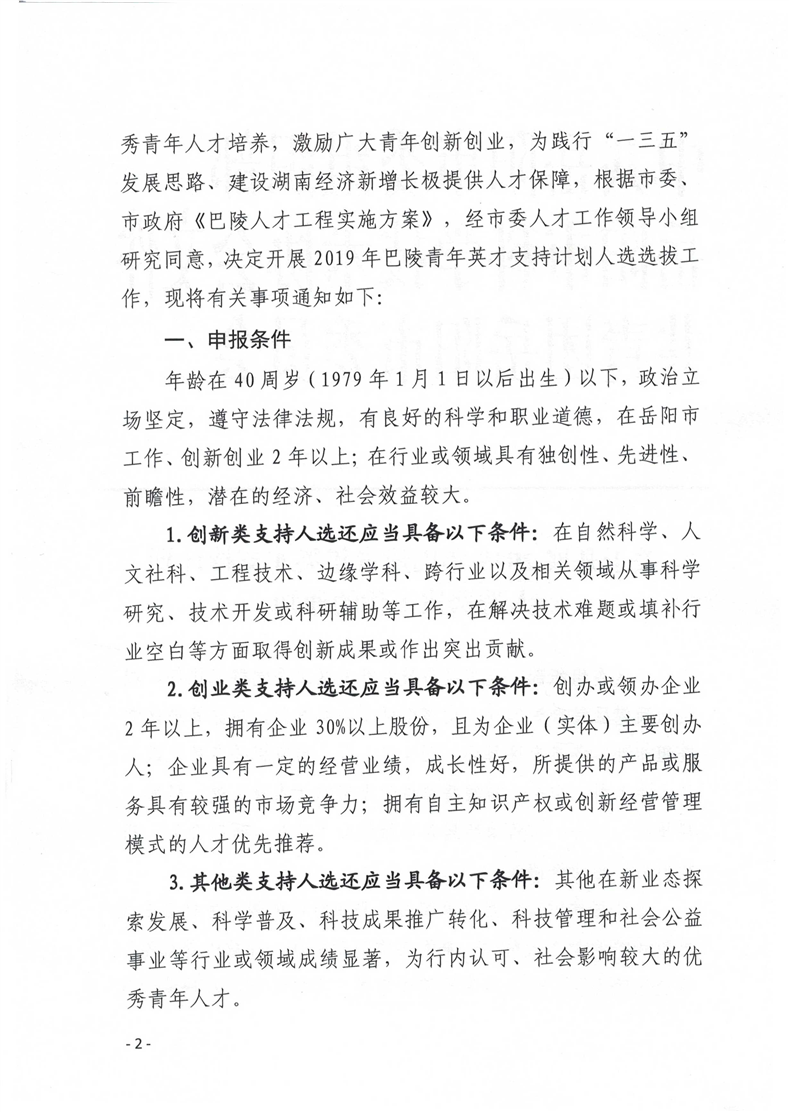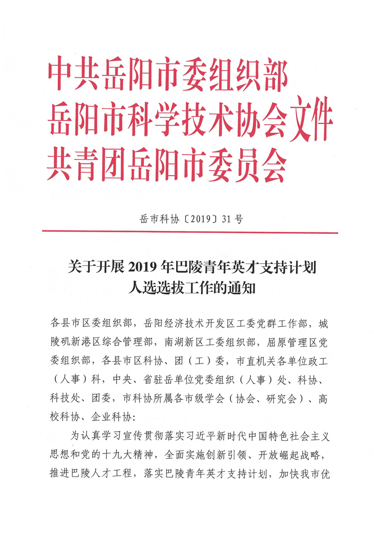 关于开展2019年巴陵青年英才支持计划人选选拔工作的通知