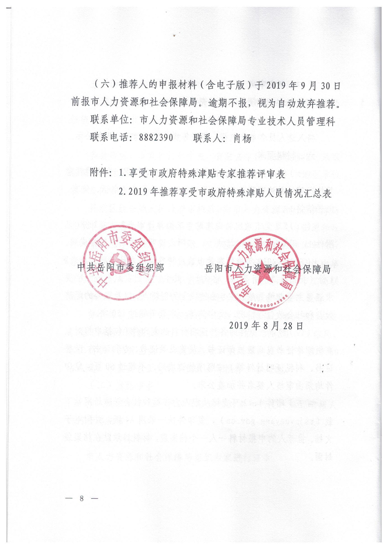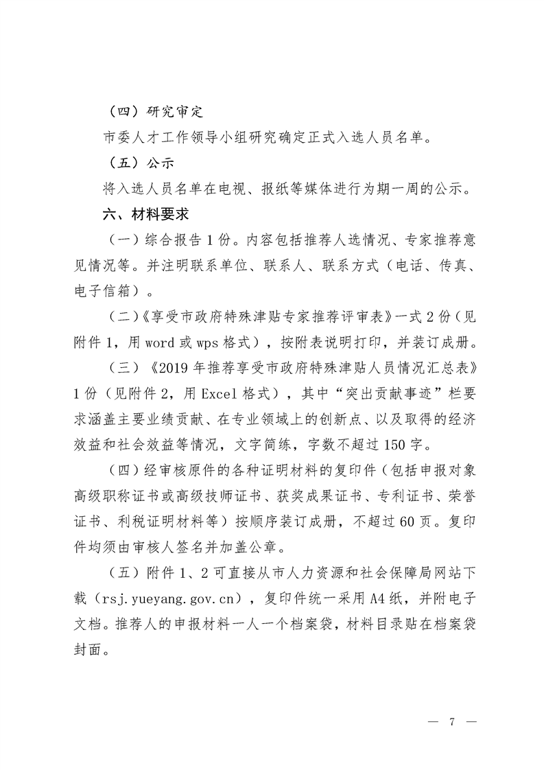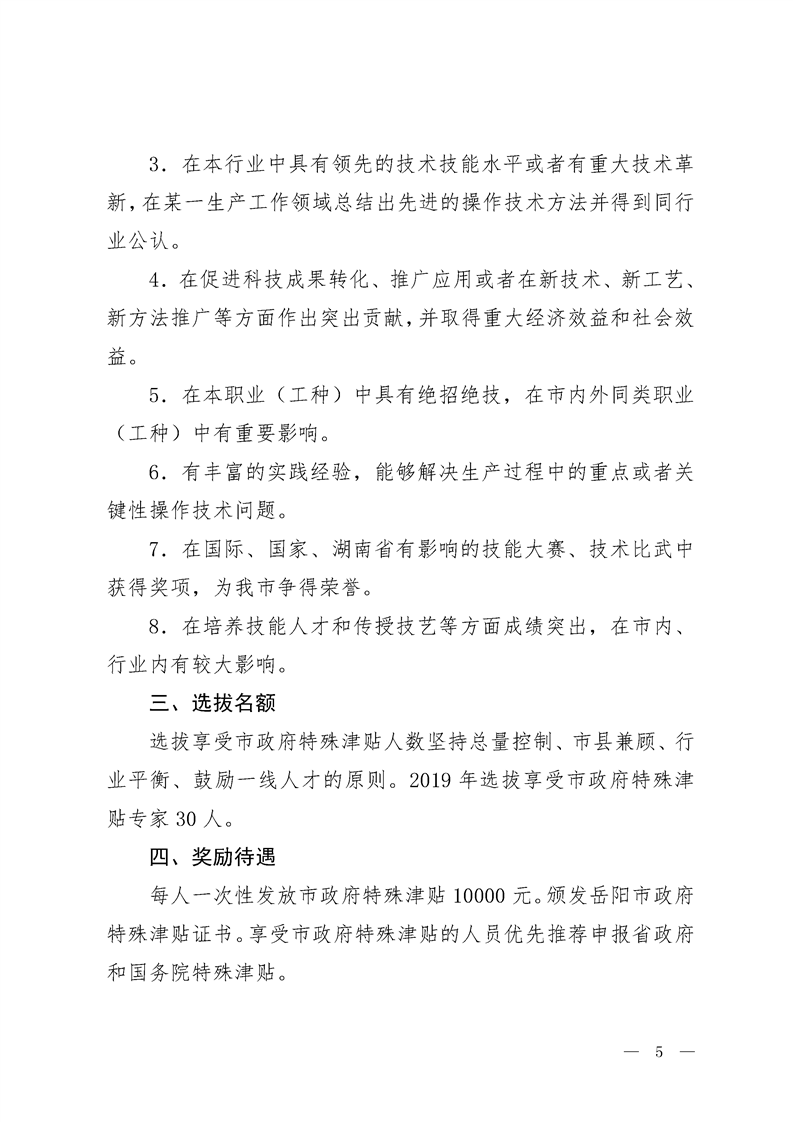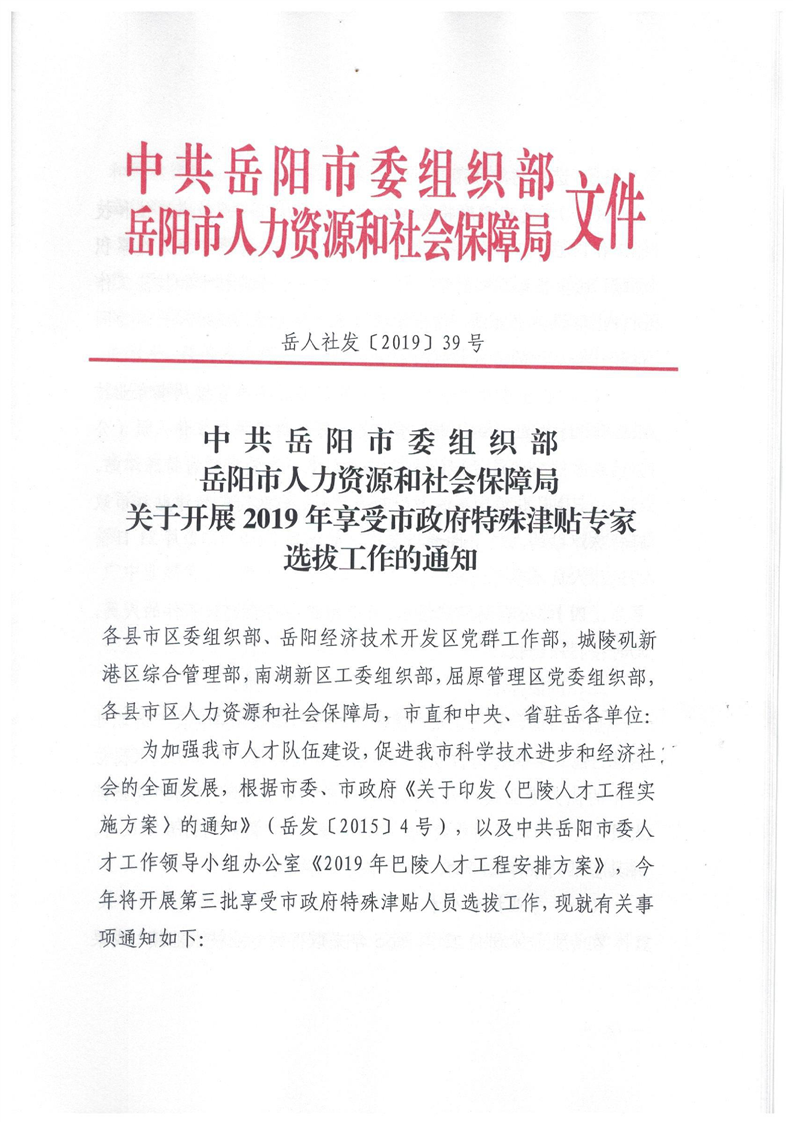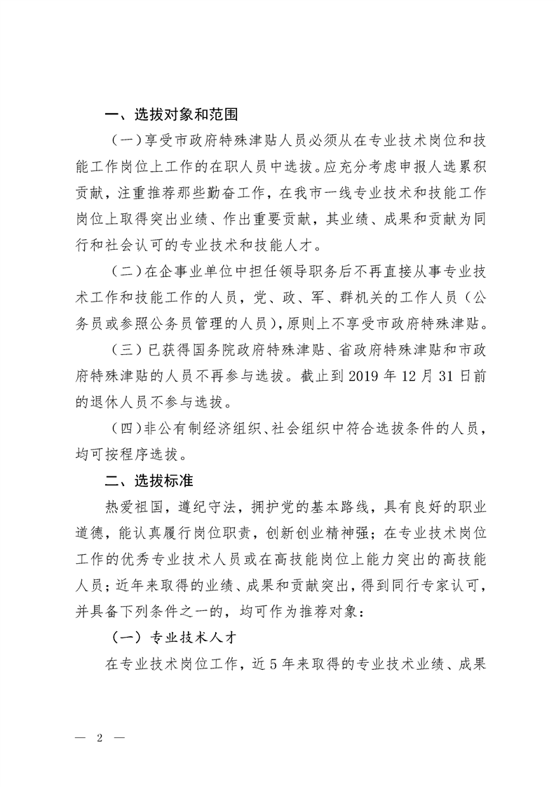 关于开展2019年享受市政府特殊津贴专家选拔工作的通知