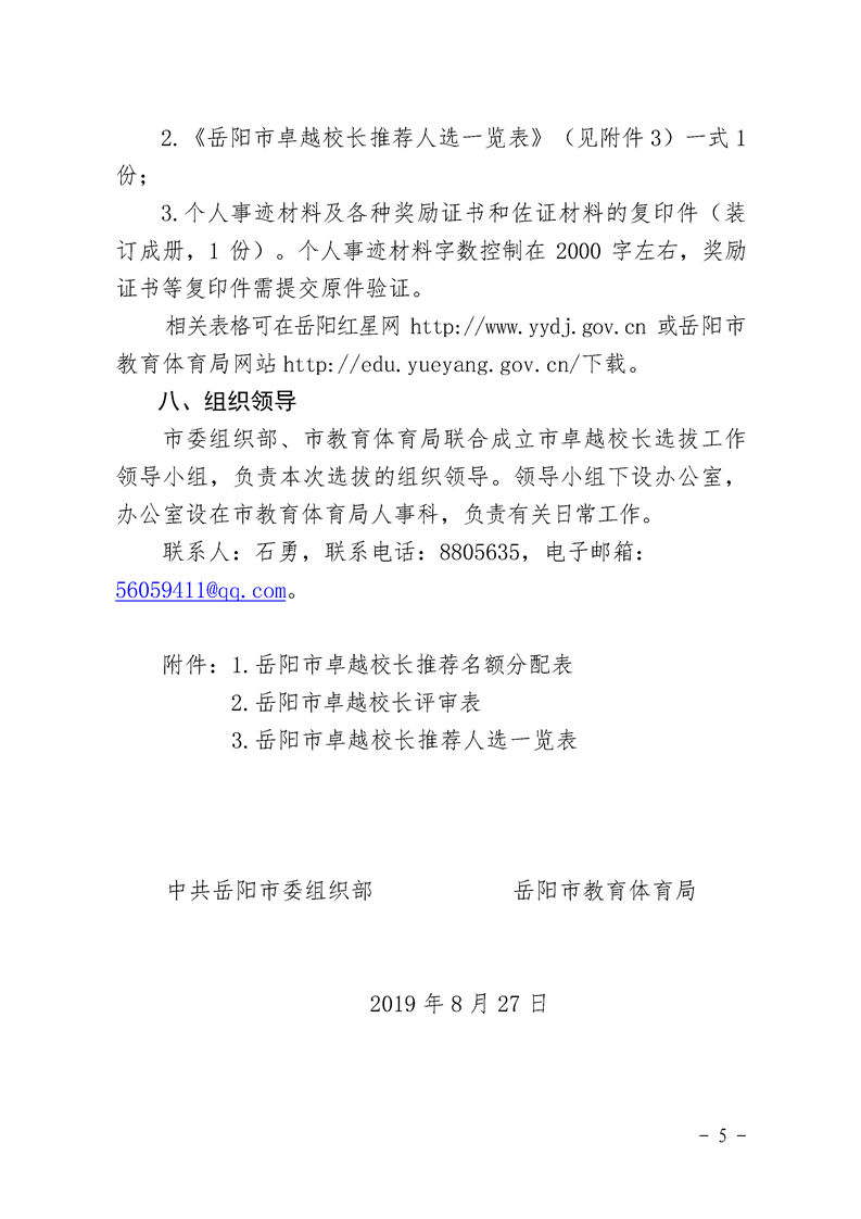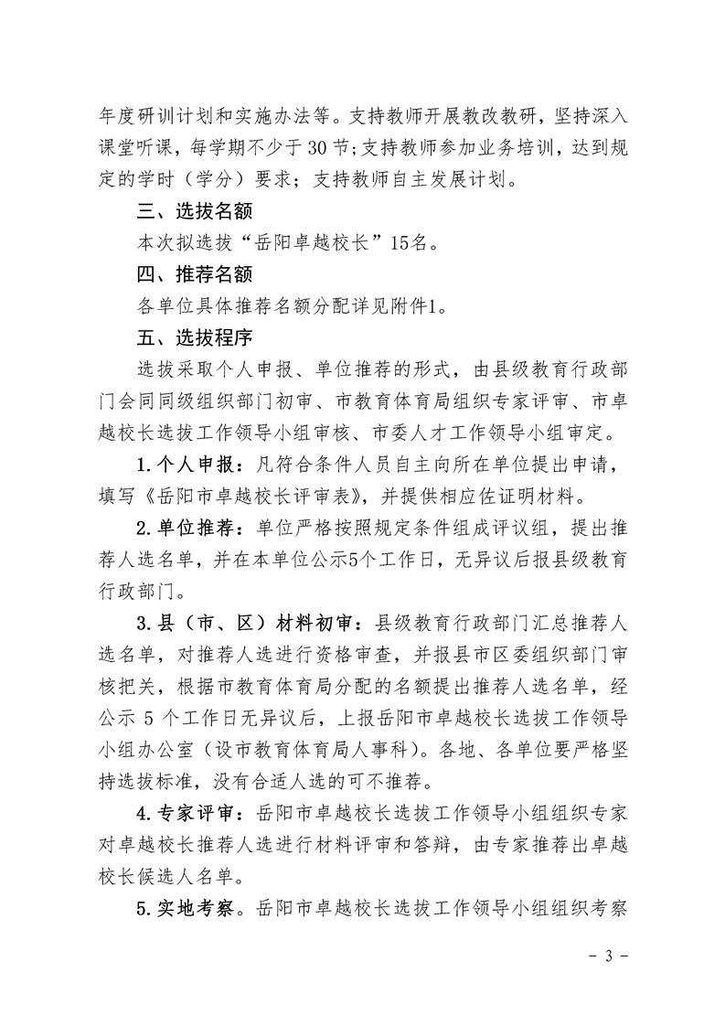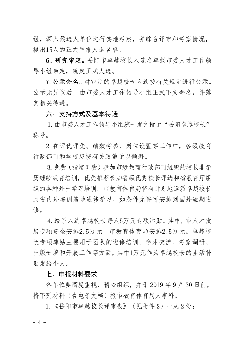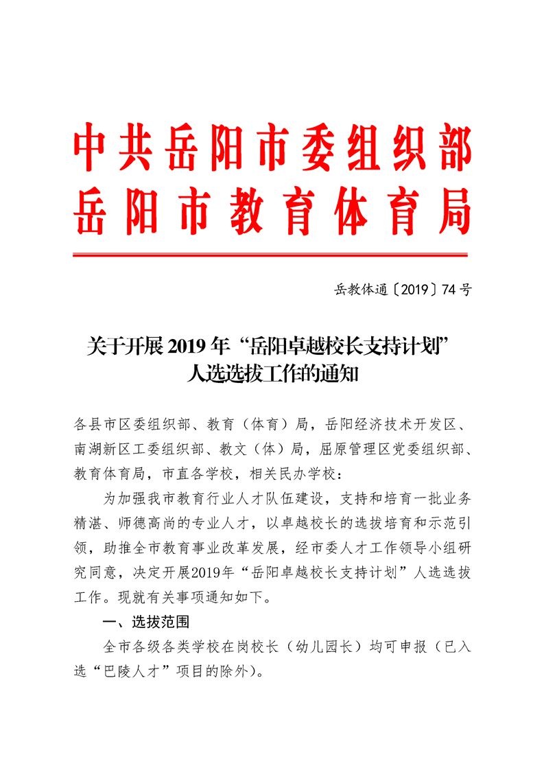 关于开展2019年“岳阳卓越校长支持计划”人选选拔工作的通知