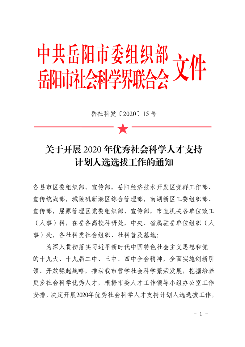 关于开展2020年度优秀社会科学人才支持计划人选选拔工作的通知