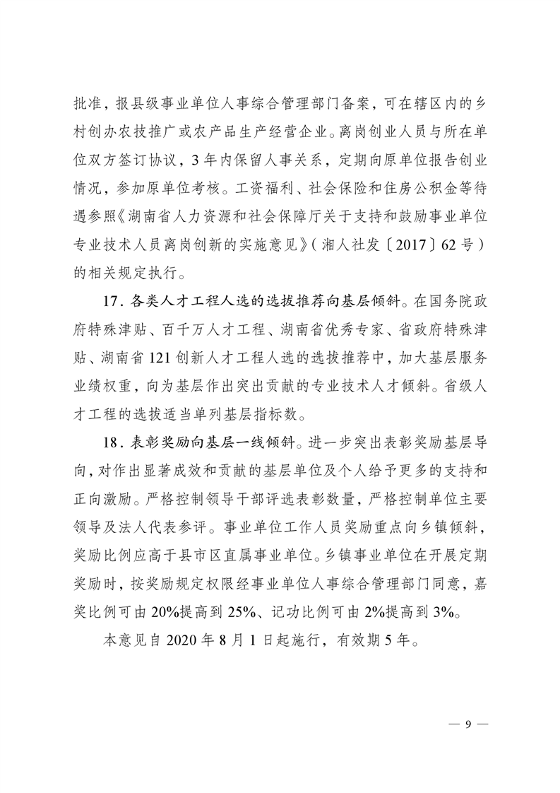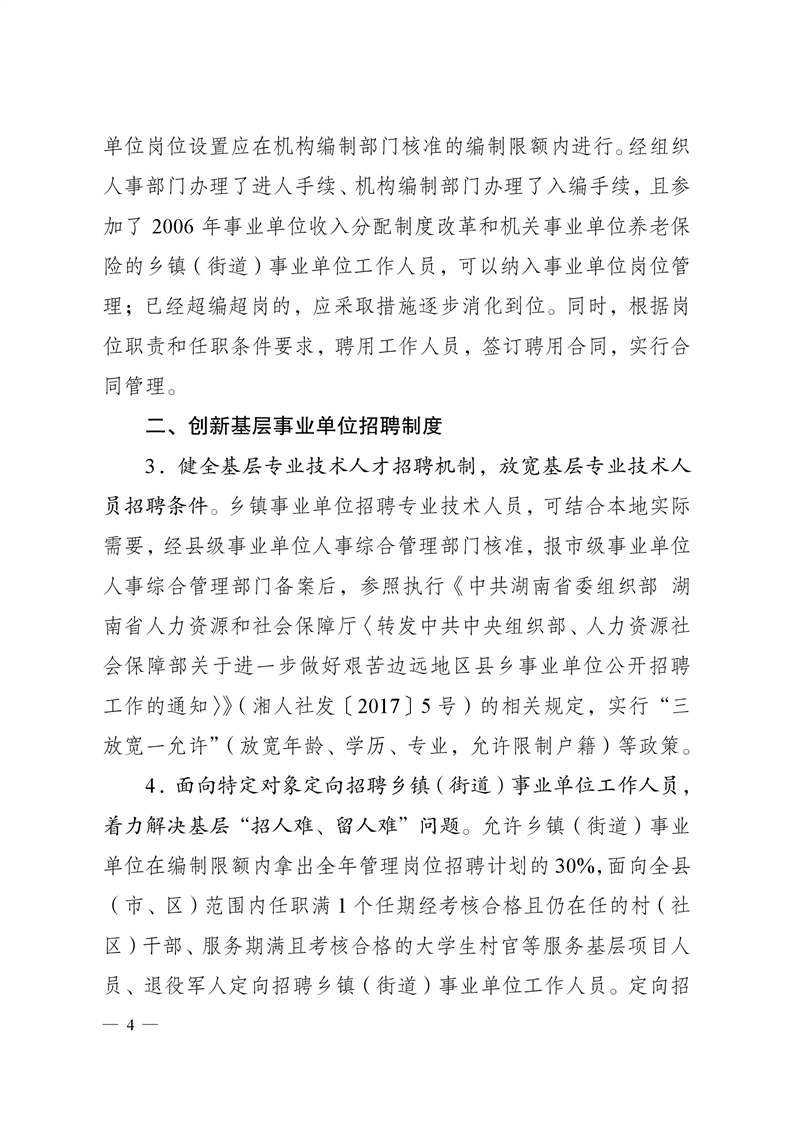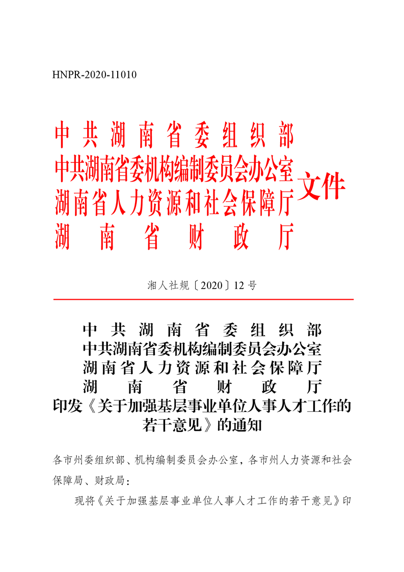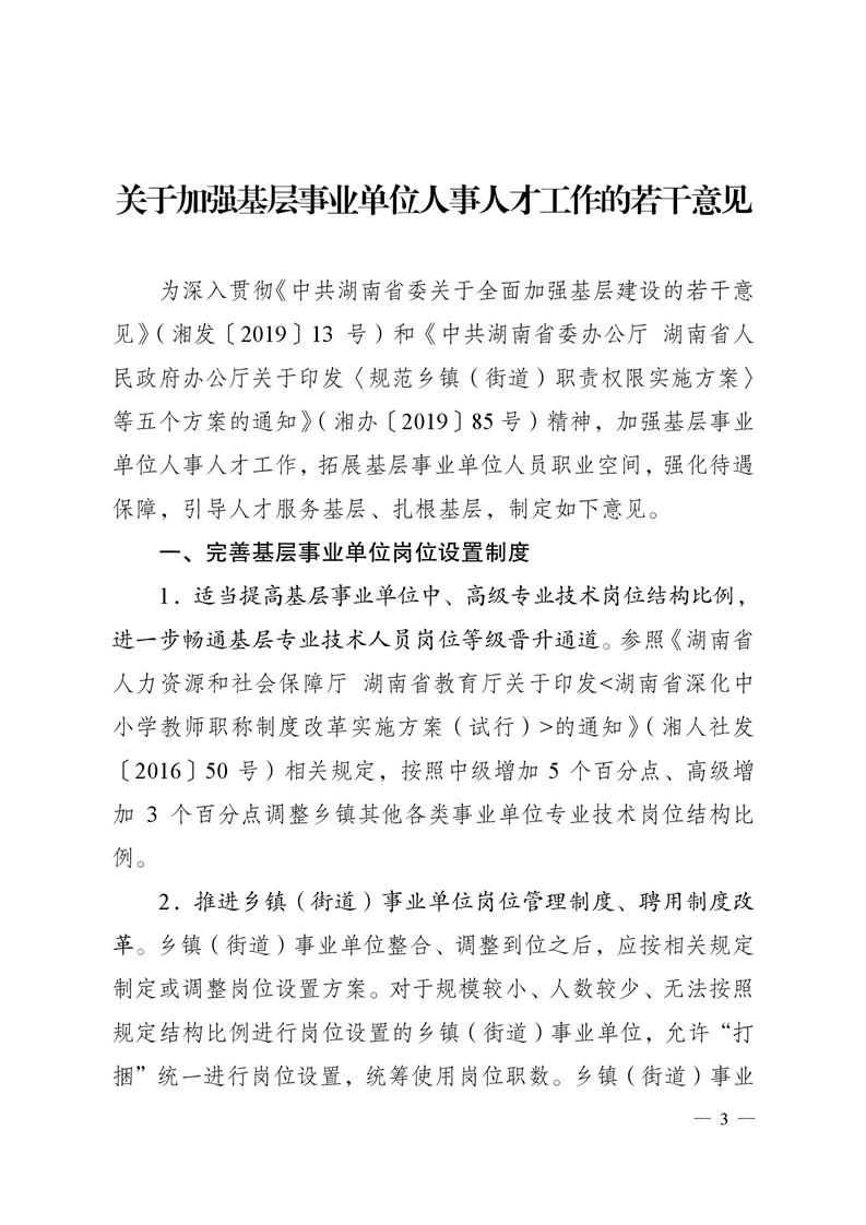 湖南省《关于加强基层事业单位人事人才工作的若干意见》