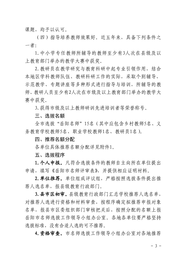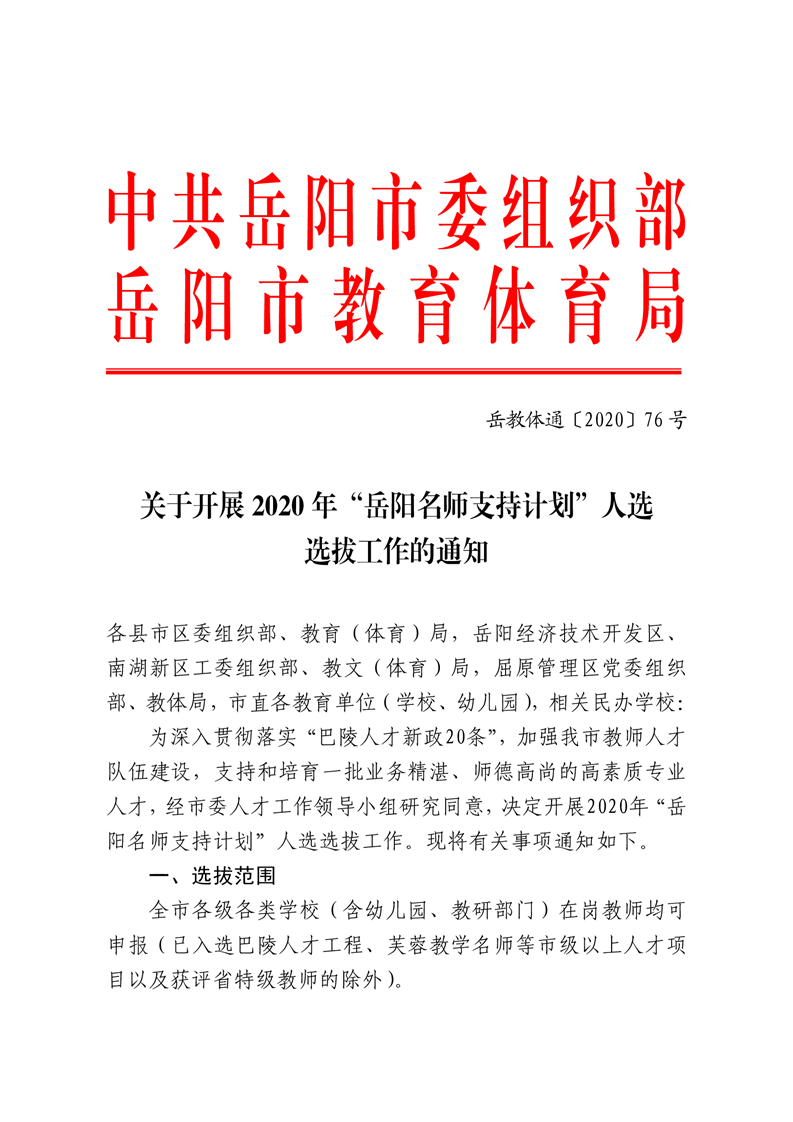关于开展2020年“岳阳名师支持计划”人选选拔工作的通知