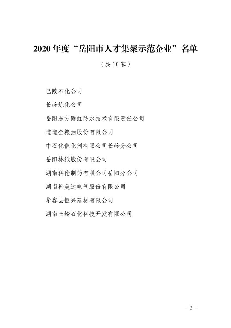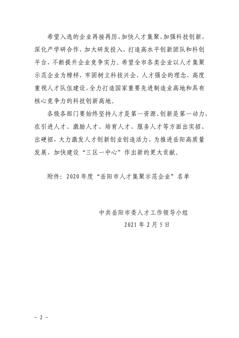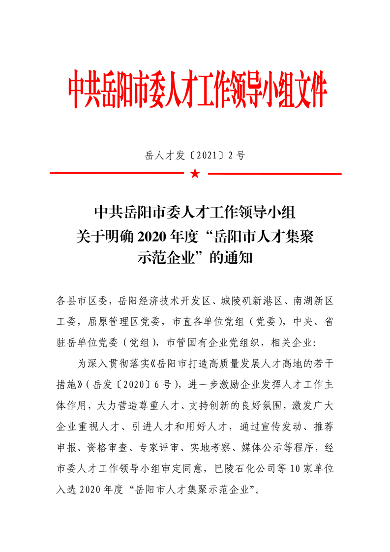 关于明确2020年度“岳阳市人才集聚示范企业”的通知
