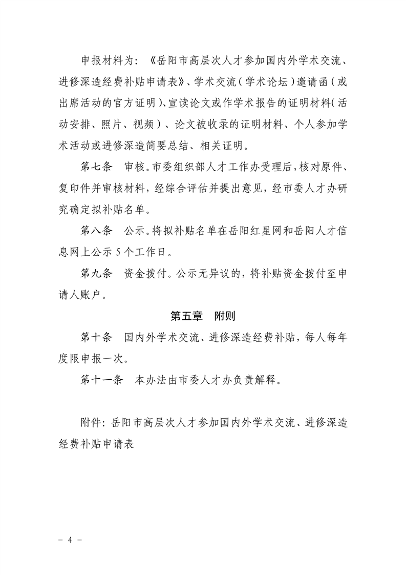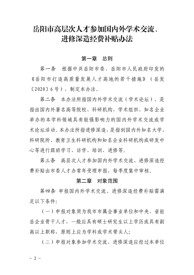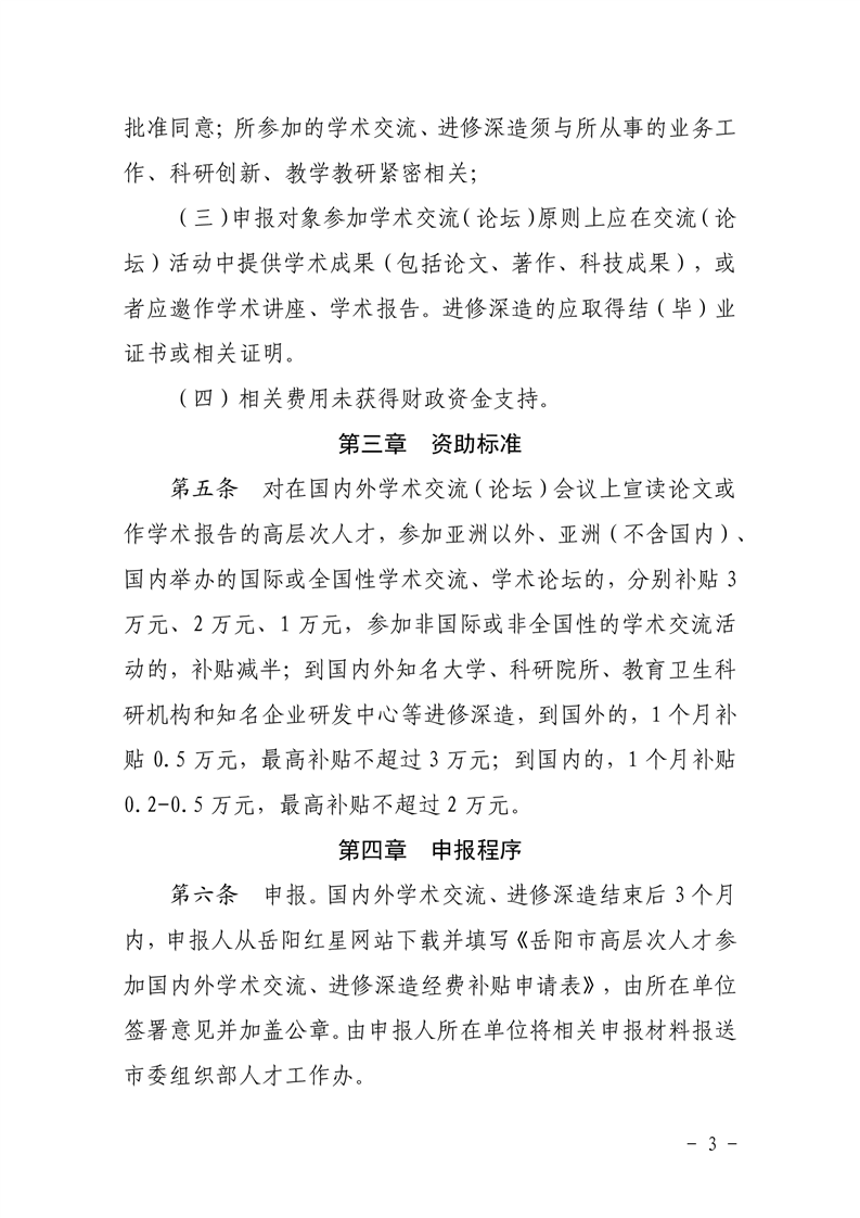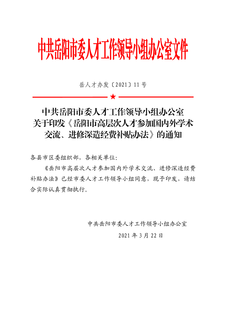 关于印发《岳阳市高层次人才参加国内外学术交流、进修深造经费补贴办法》的通知