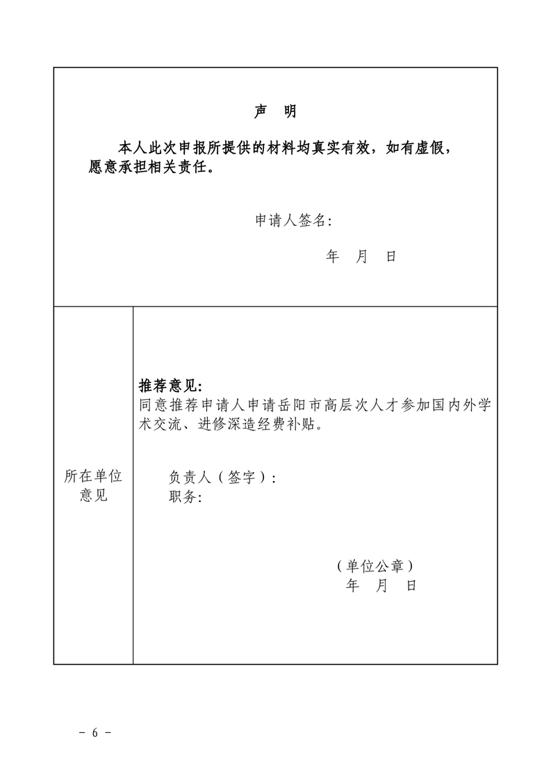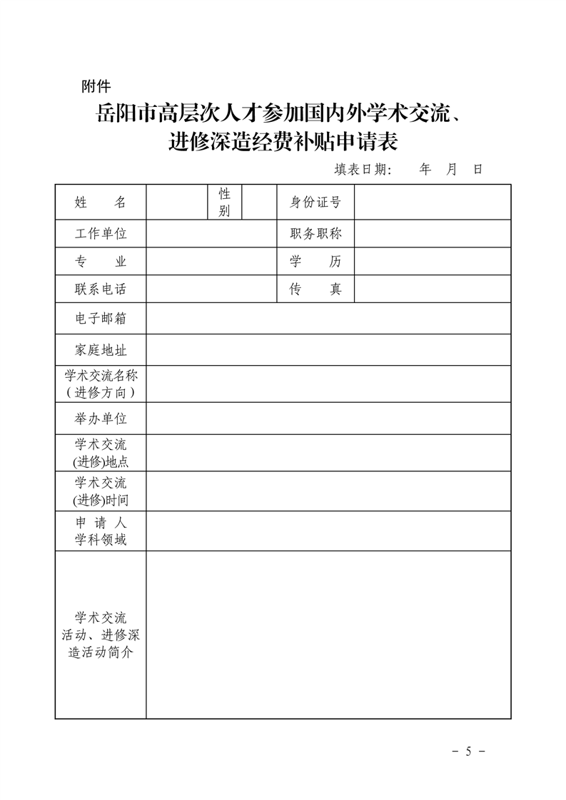 《岳阳市高层次人才参加国内外学术交流、进修深造经费补贴办法》附件表格.docx