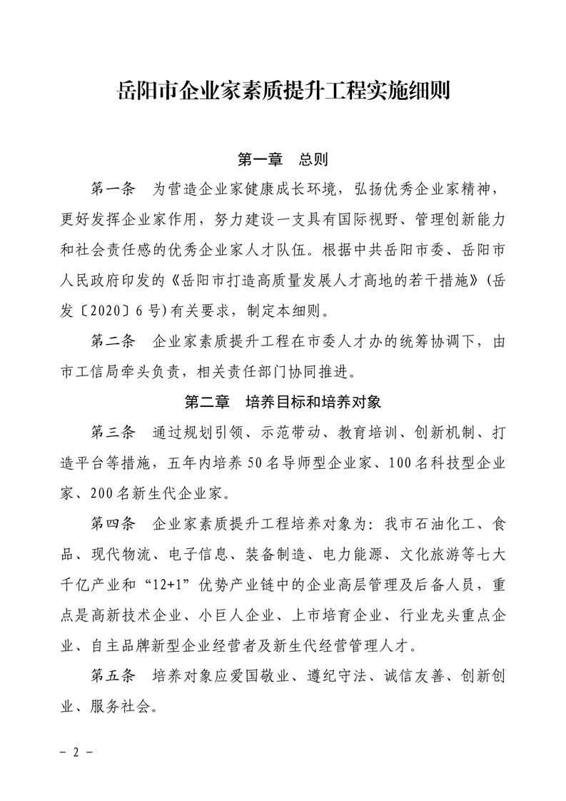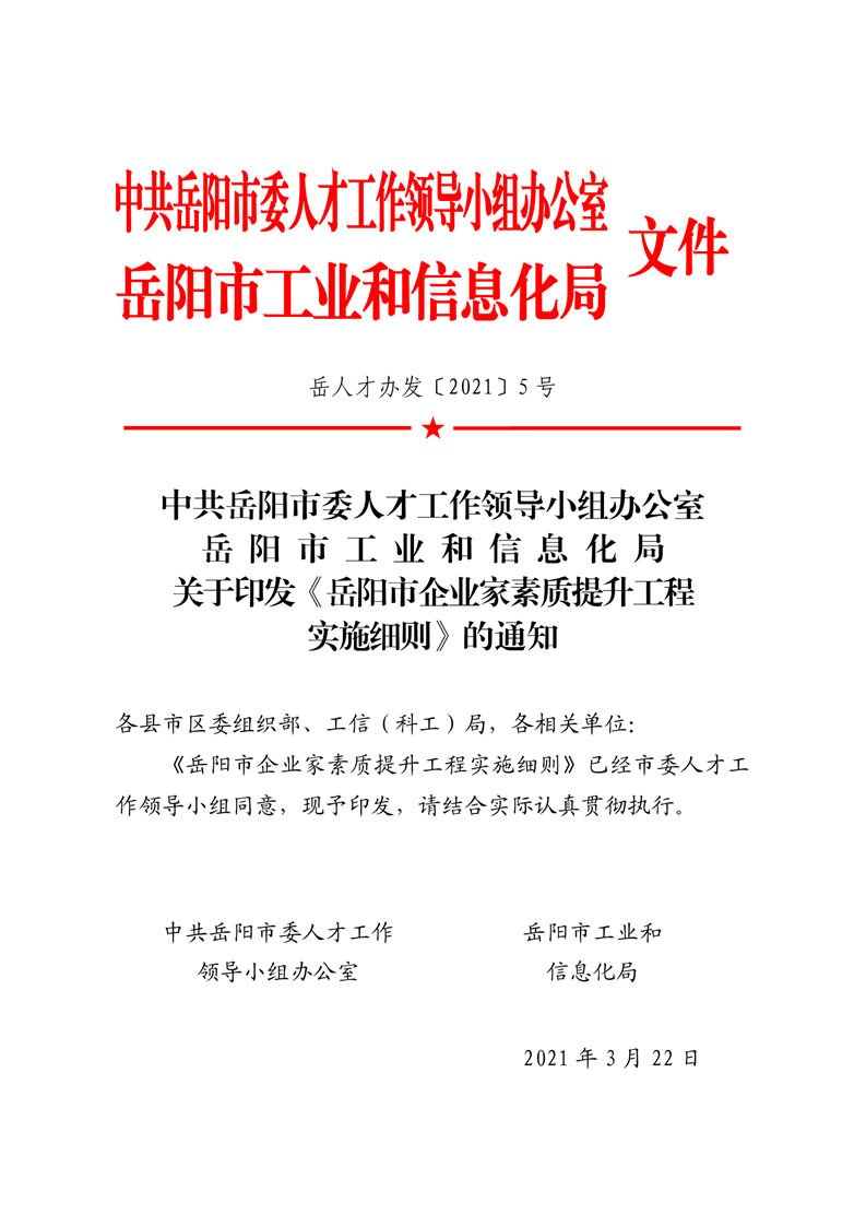 关于印发《岳阳市企业家素质提升工程实施细则)的通知