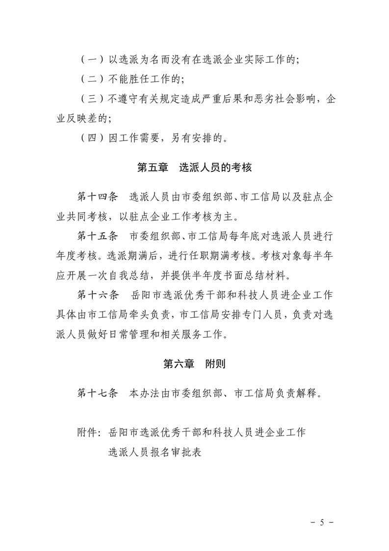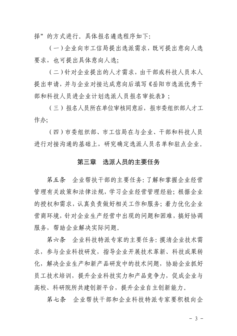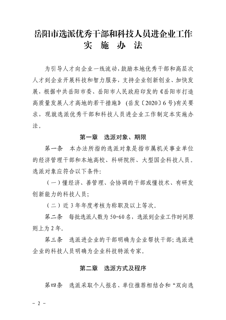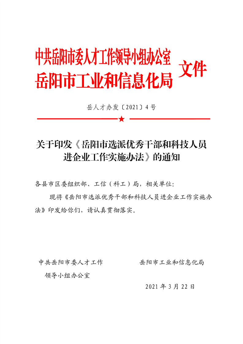 关于印发《岳阳市选派优秀干部和科技人员进企业工作实施办法)的通知