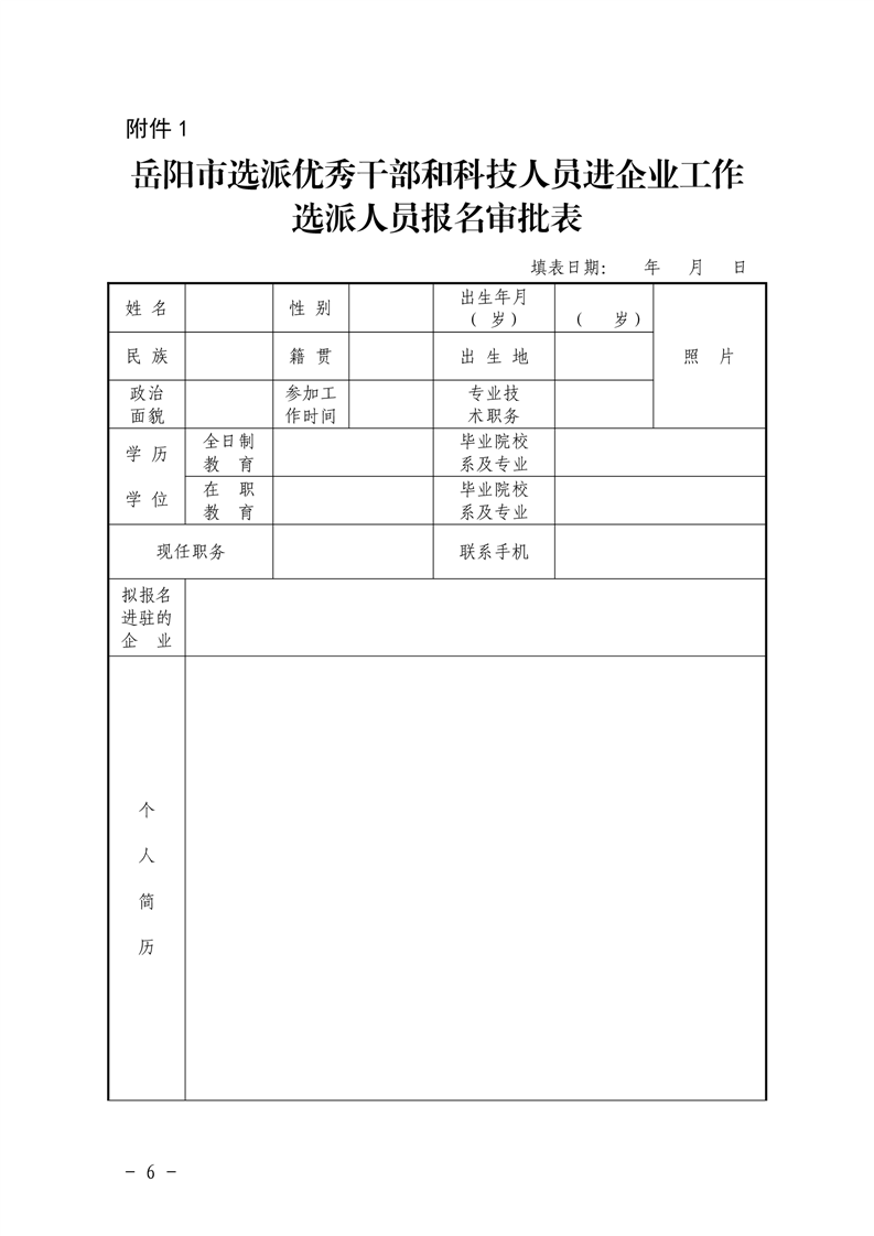 《岳阳市选派优秀干部和科技人员进企业工作实施办法》附件表格.doc