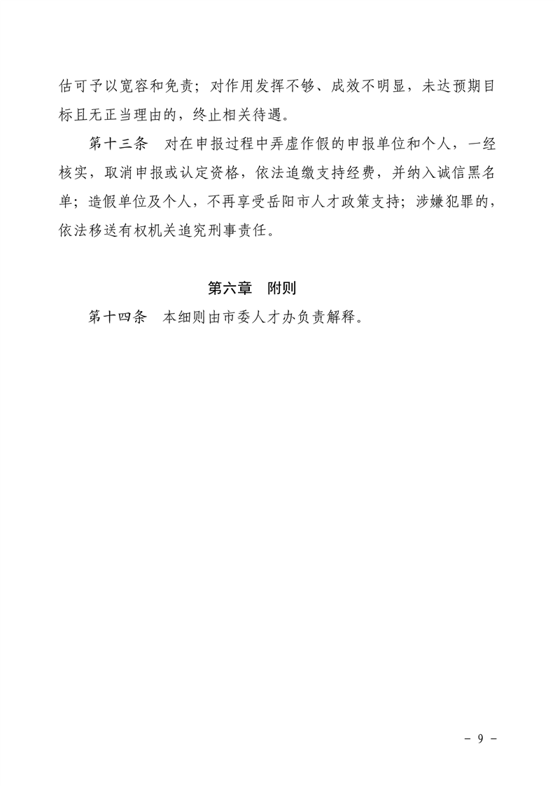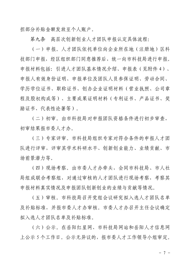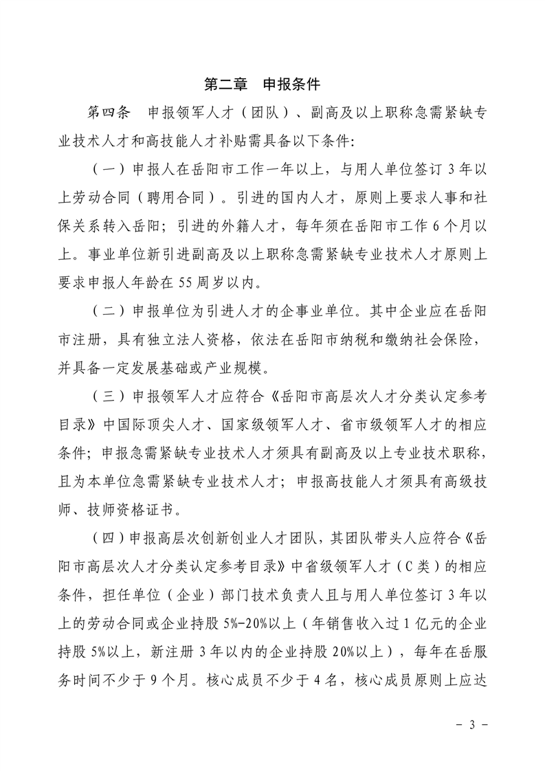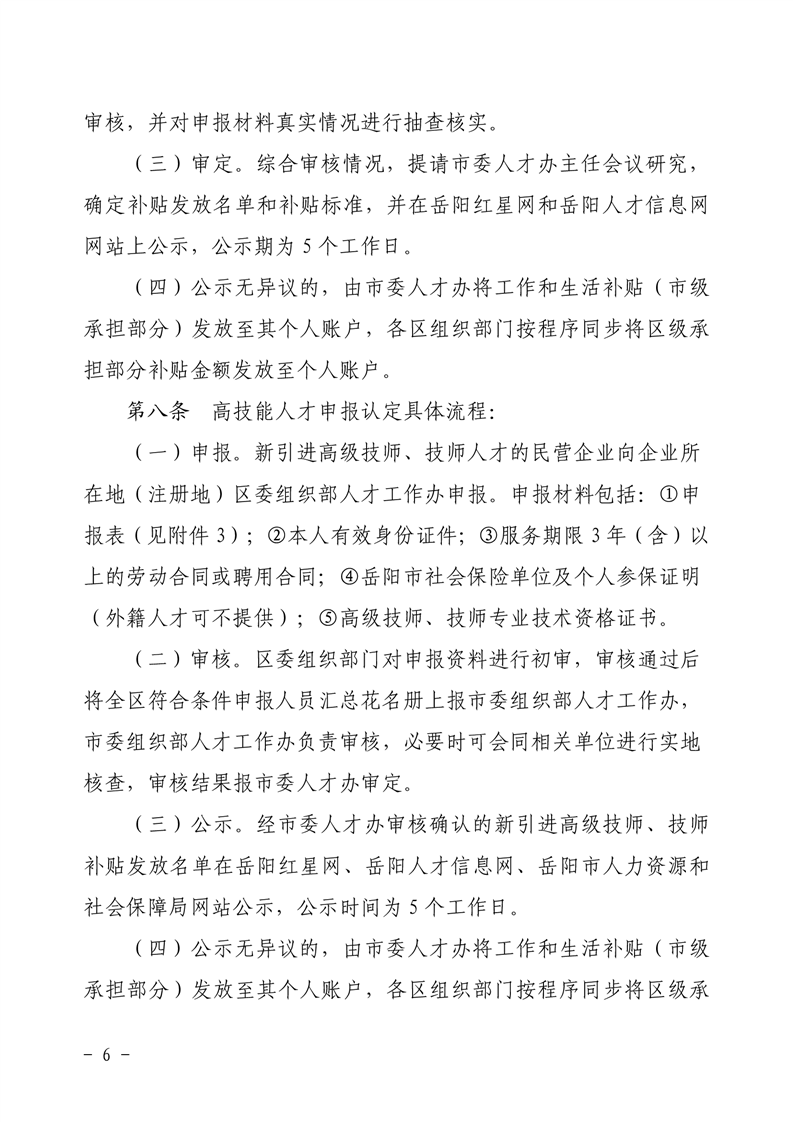 关于印发《岳阳市引进高层次人才补贴支持办法》的通知