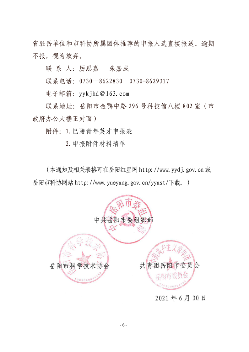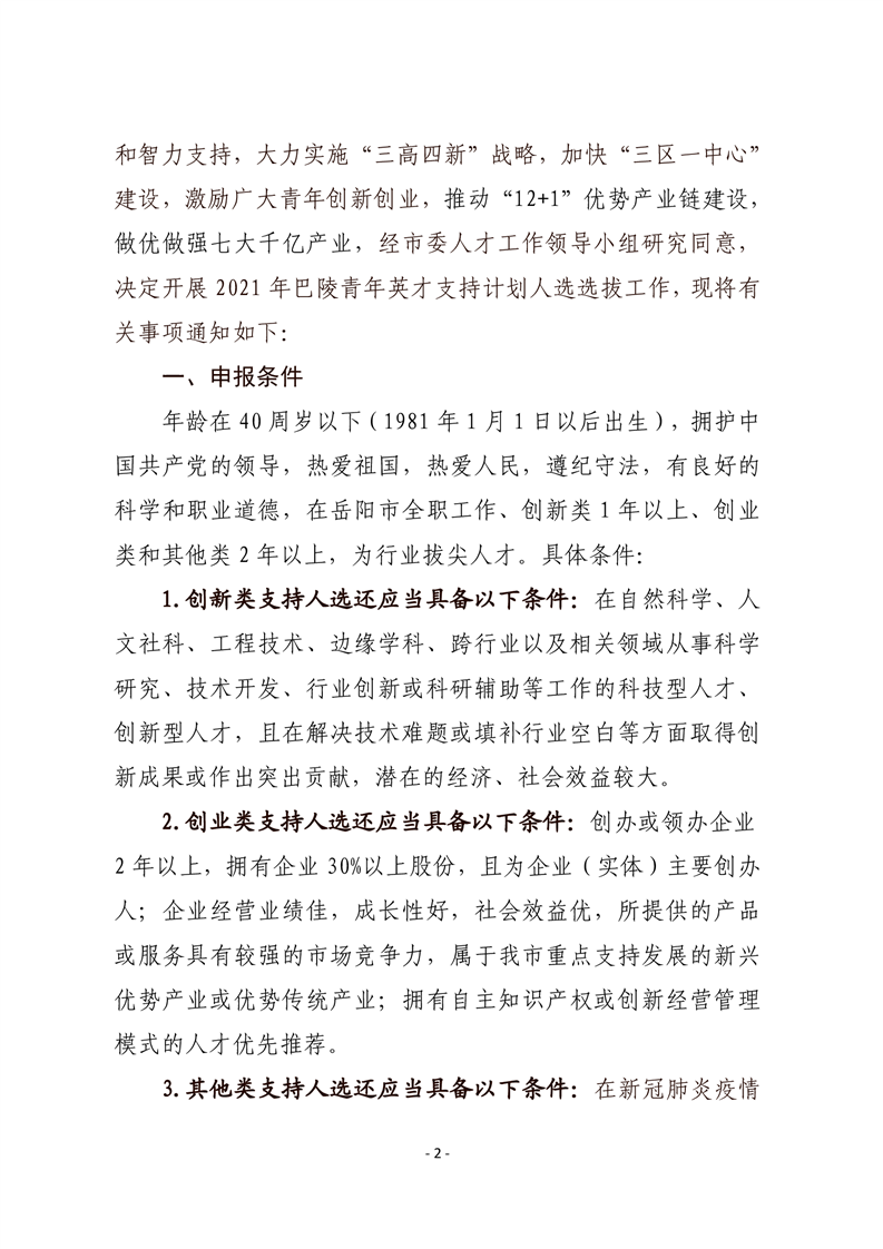 关于开展2021年巴陵青年英才支持计划人选选拔工作的通知