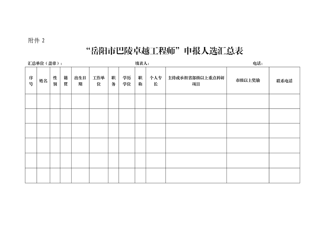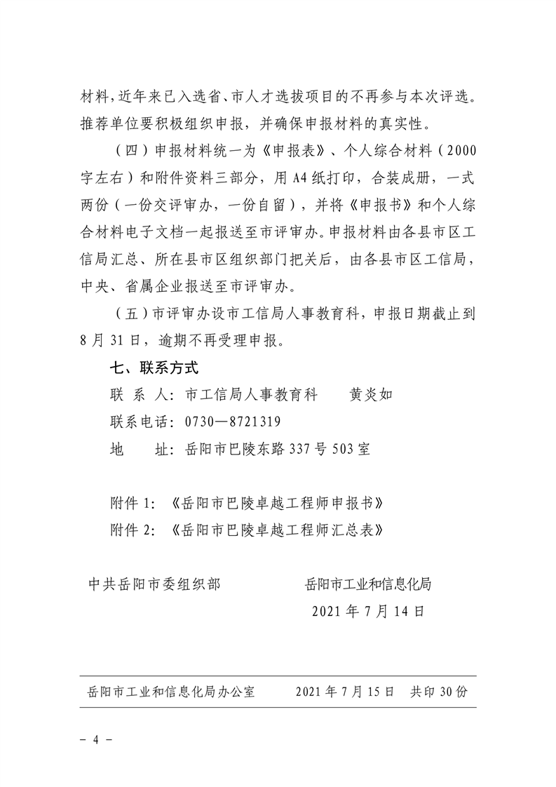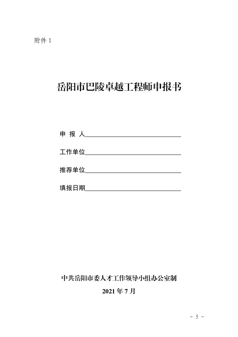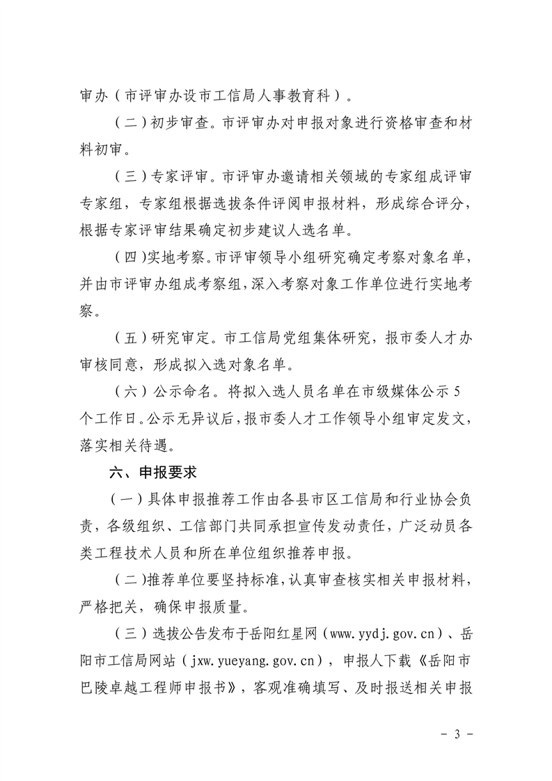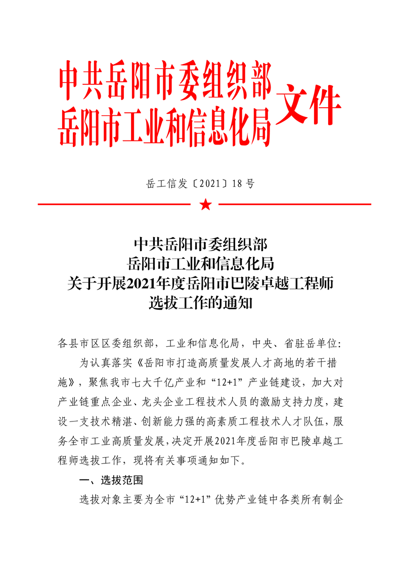 关于开展2021年度岳阳市巴陵卓越工程师选拔工作的通知