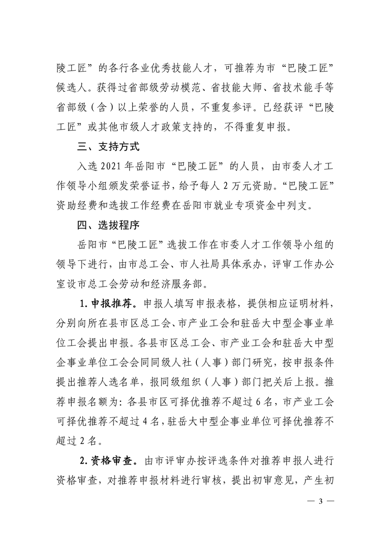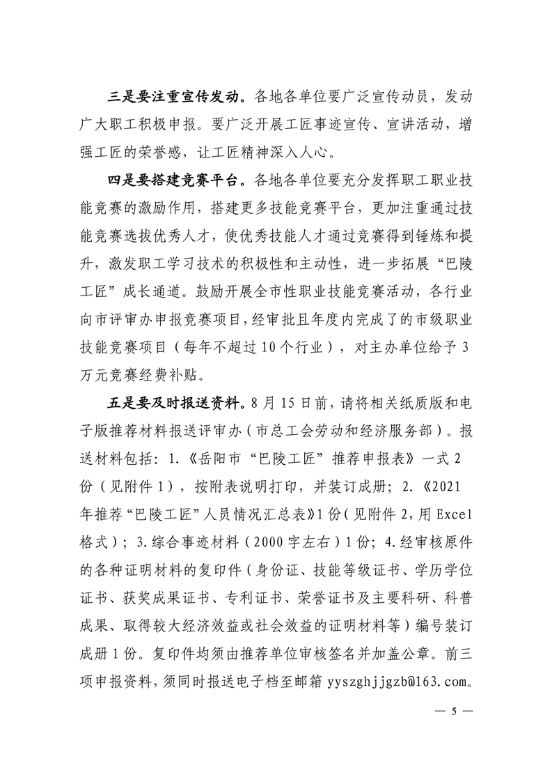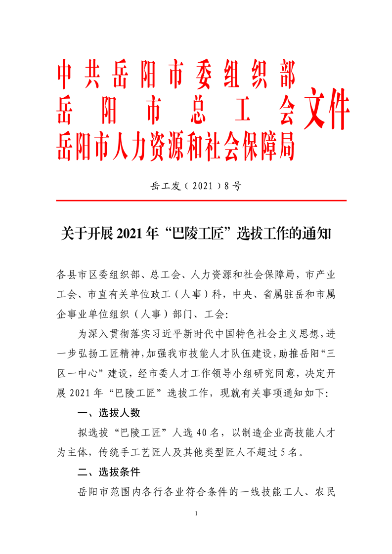 关于开展2021年“巴陵工匠”选拔工作的通知
