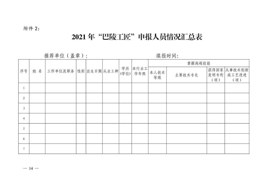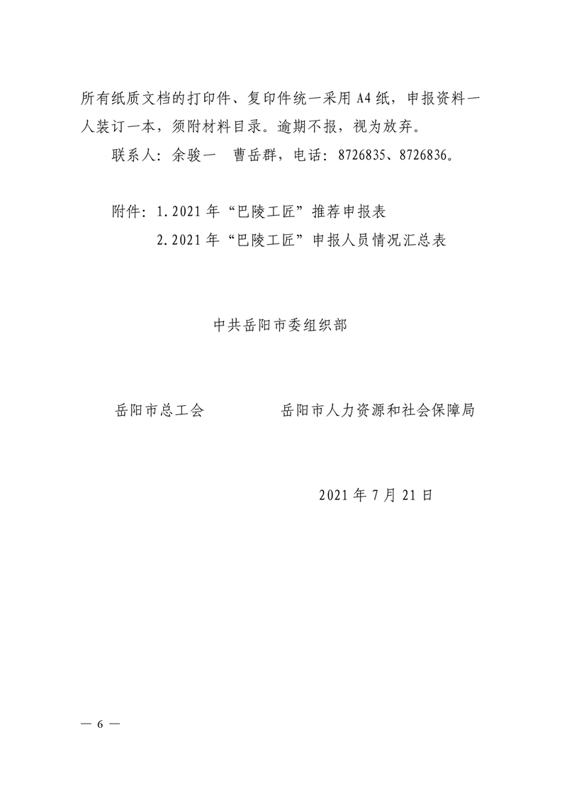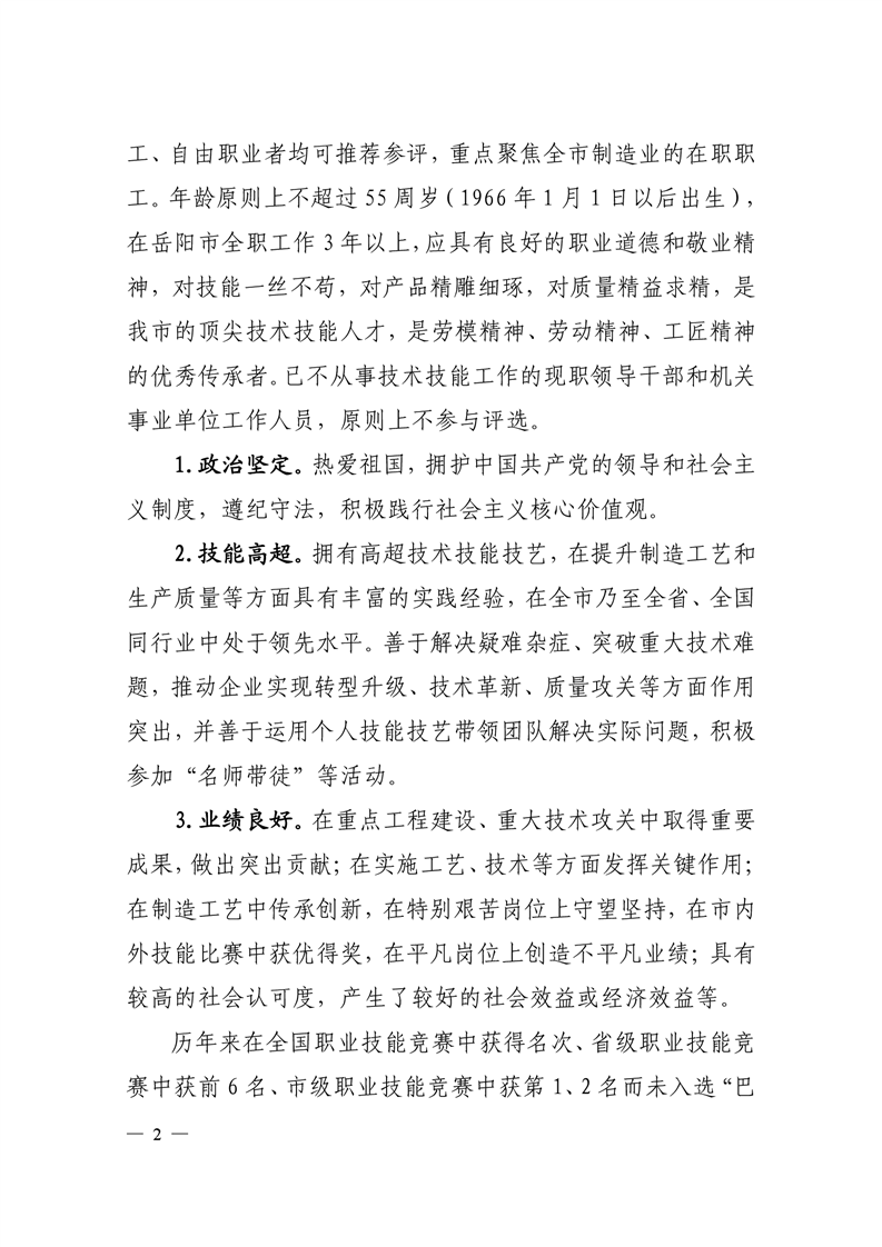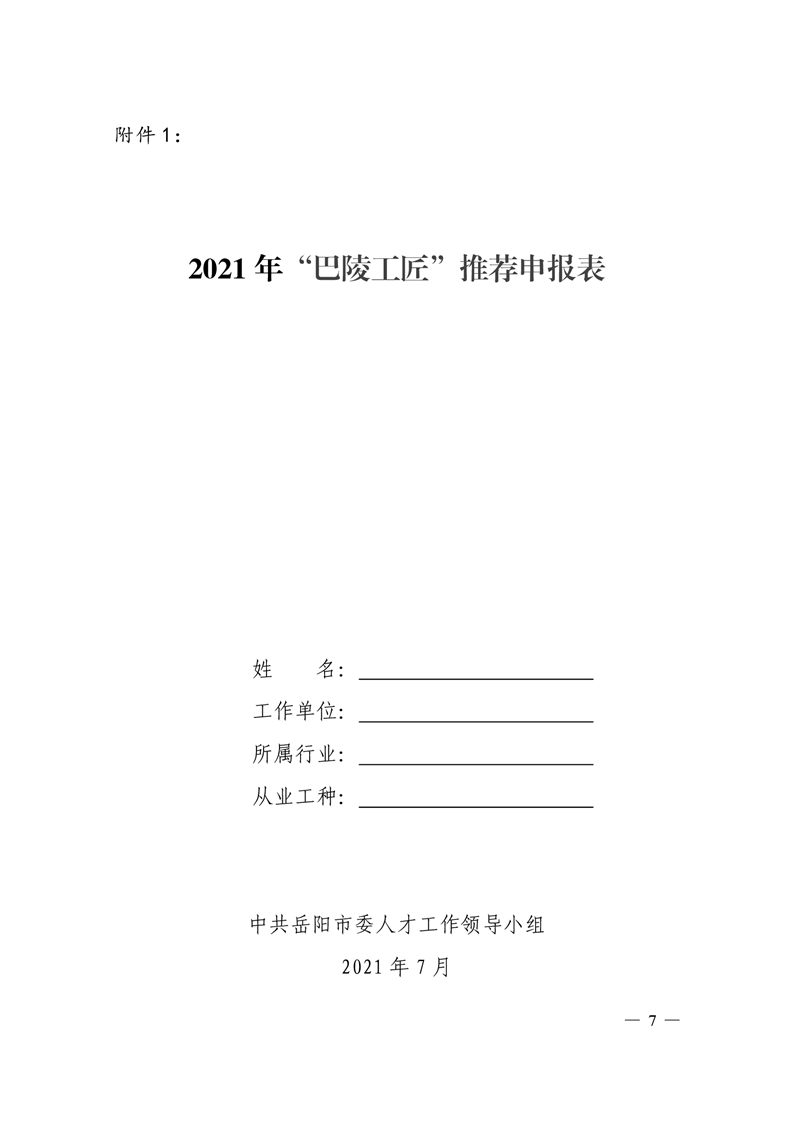 关于开展2021年“巴陵工匠”选拔工作的通知