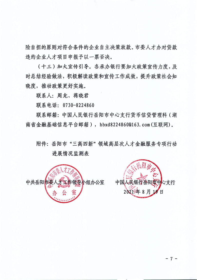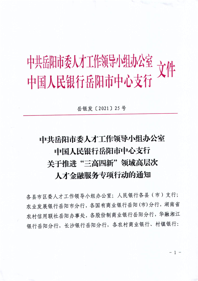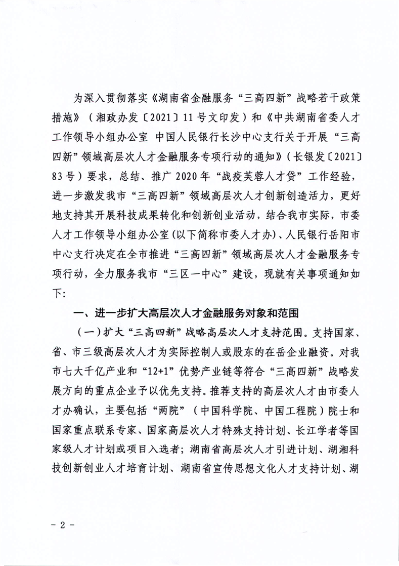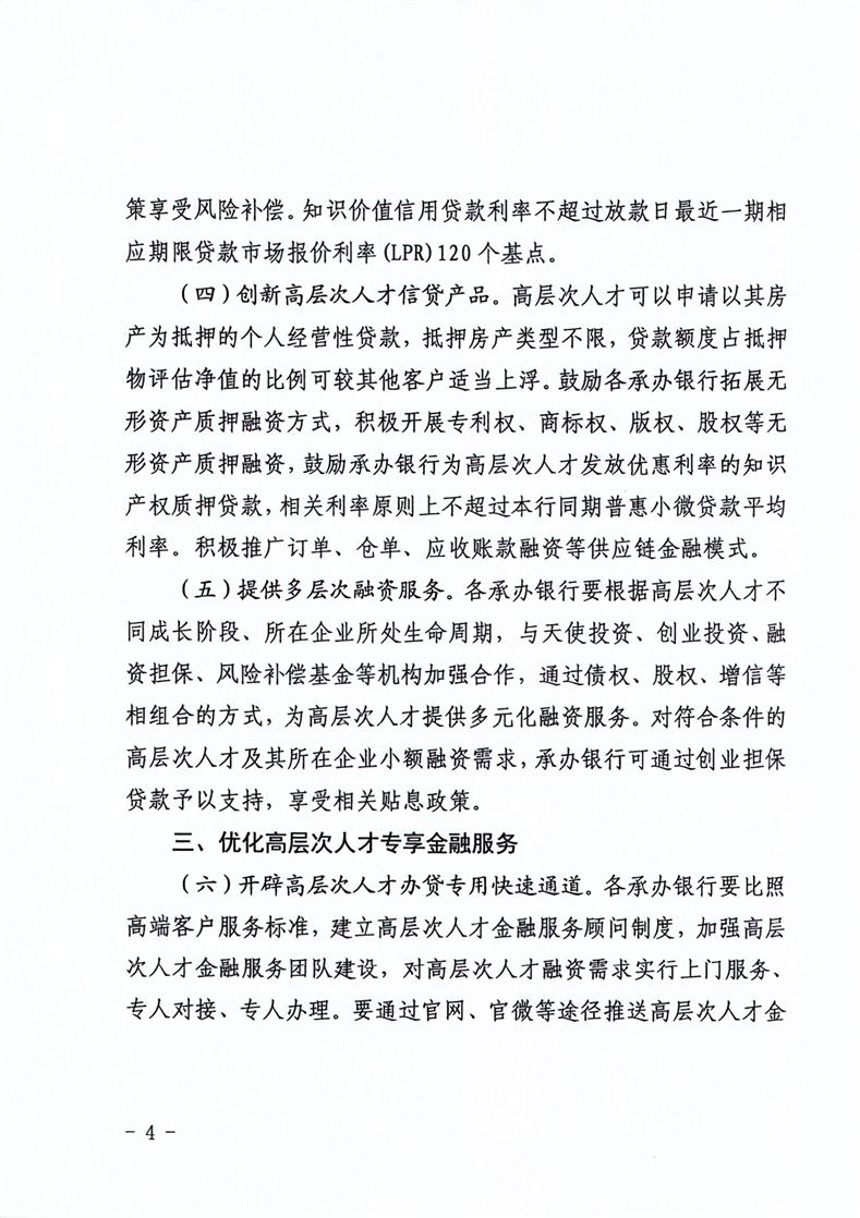 关于推进“三高四新”领域高层次人才金融服务专项行动的通知