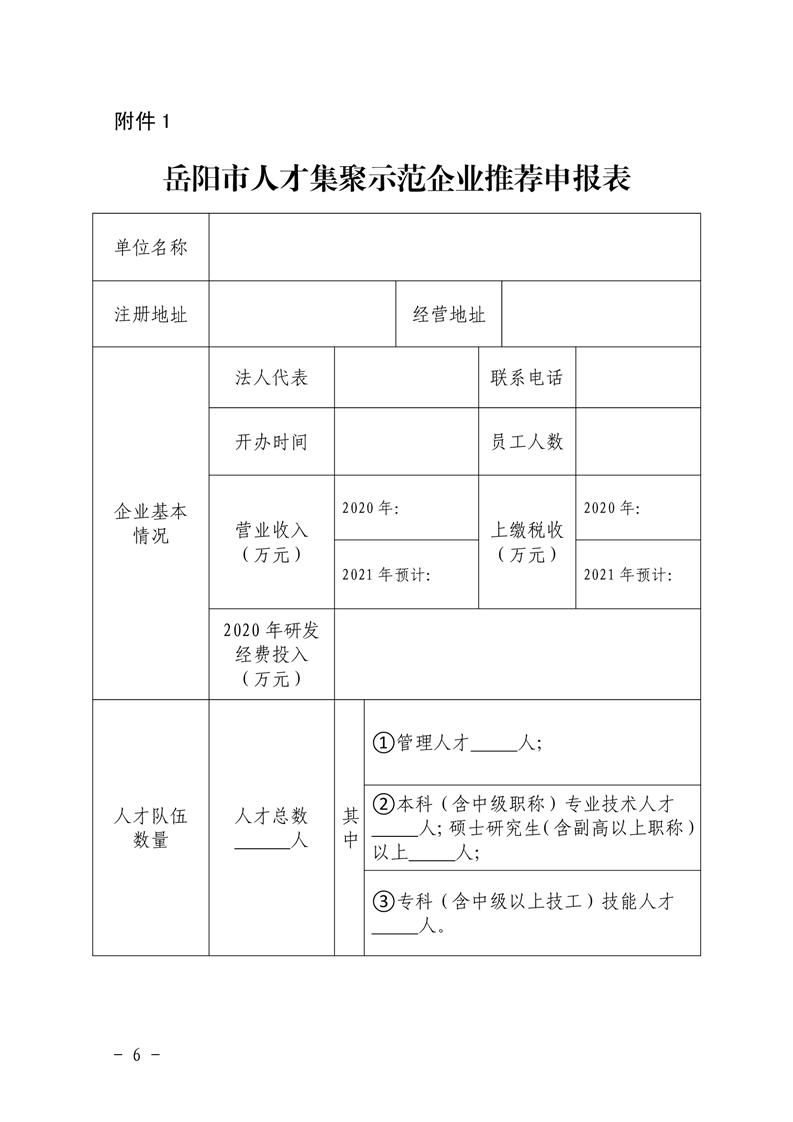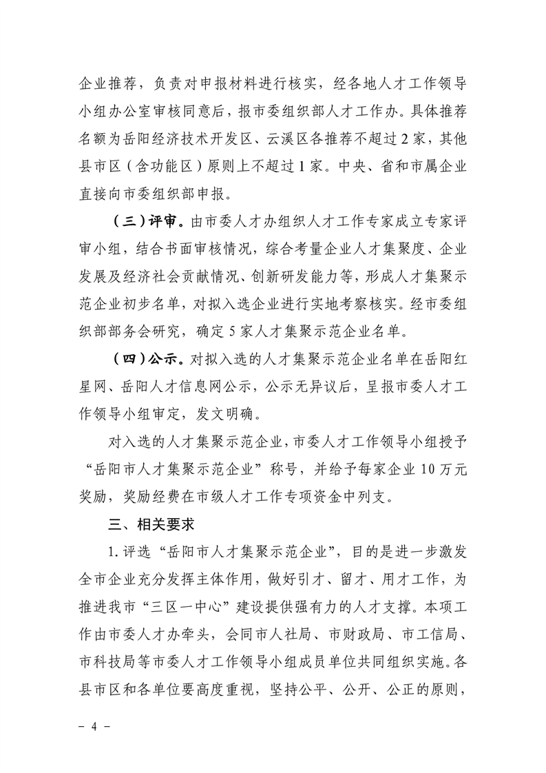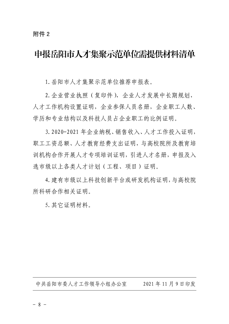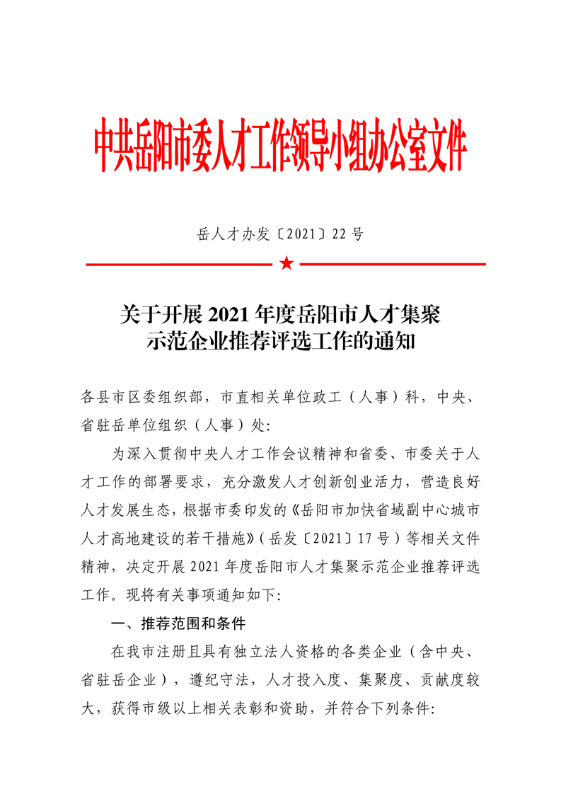关于开展2021年度岳阳市人才集聚示范企业推荐评选工作的通知