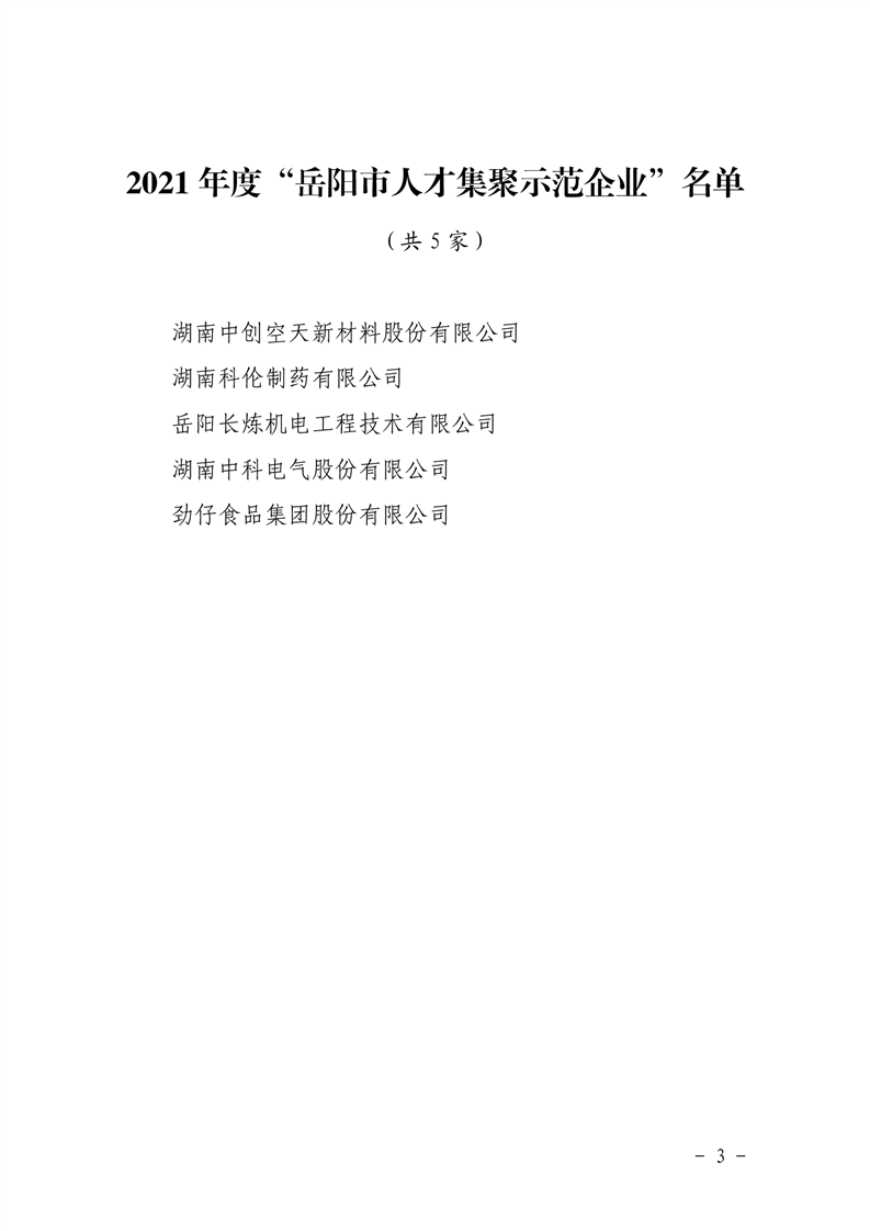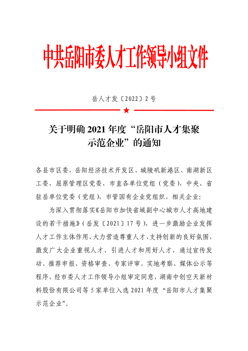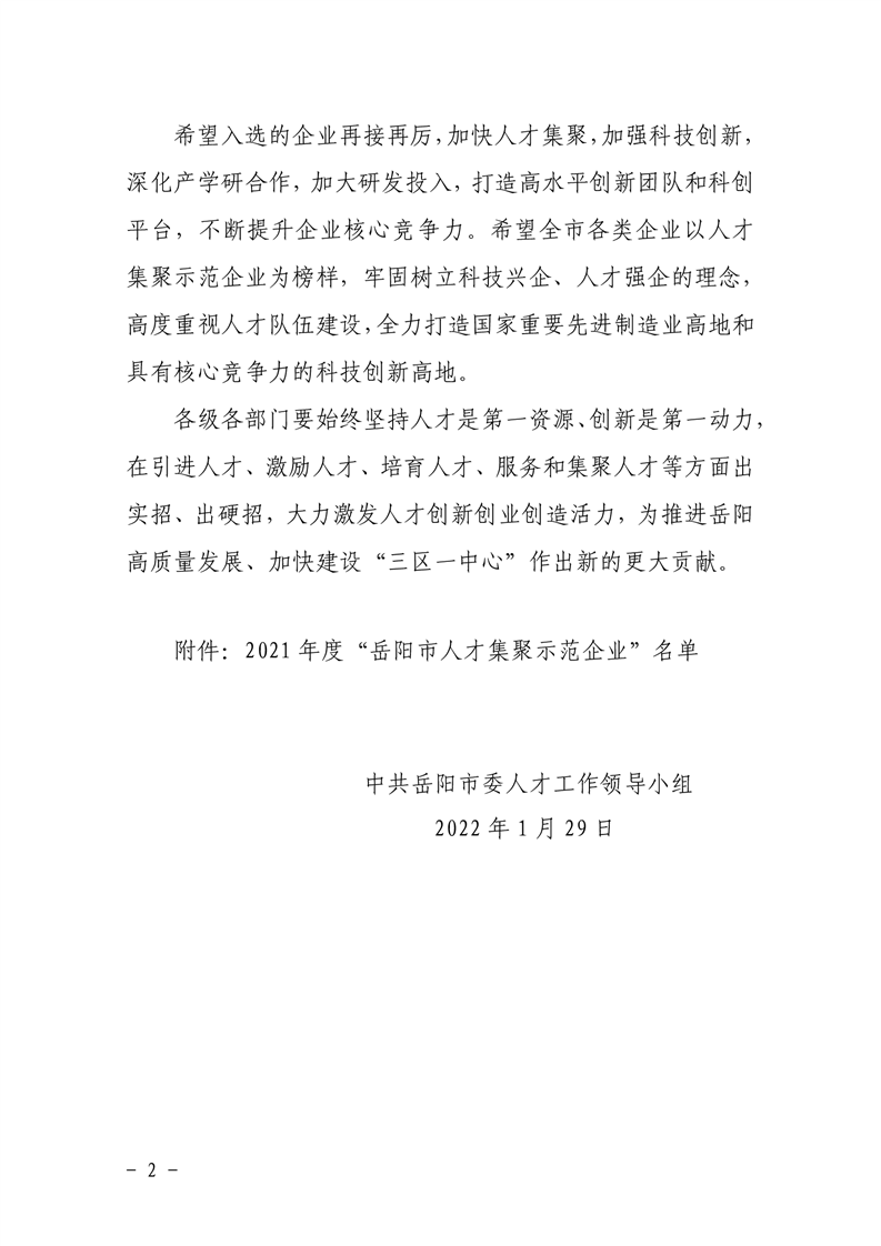 关于明确2021年度“岳阳市人才集聚示范企业”的通知