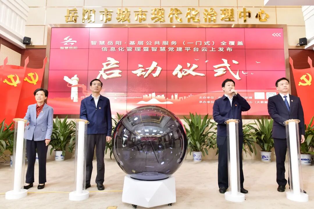 10月28日,智慧岳阳·基层公共服务(一门式)全覆盖信息化管理暨智慧党建平台云上发布启动仪式,在市城市现代化治理中心举行。市委常委、常务副市长李挚宣布平台正式上线运行,市委常委、组织部长王武出席启动仪式并讲话。市委基层公共服务(一门式)全覆盖领导小组成员单位负责同志等在主会场参加启动仪式,各县市区、乡镇(街道)、村(社区)的42万名党员群众通过云视讯视频连线的方式在线参与。
